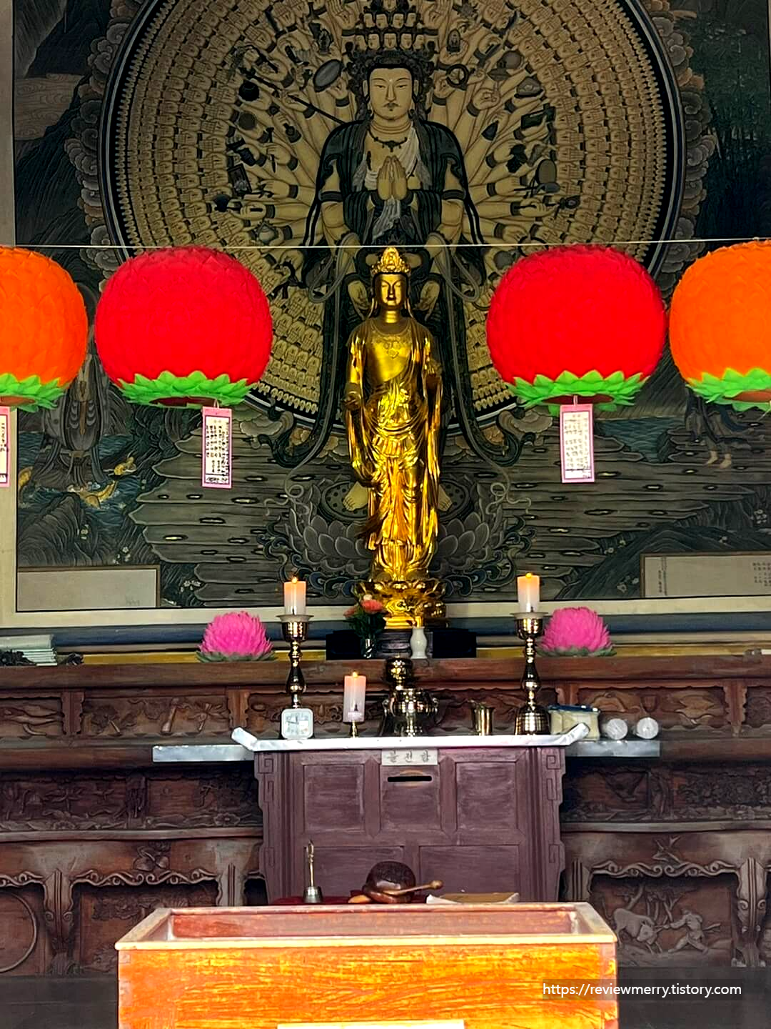 사찰은 안에 이렇게 부처님 동상과 기도를 할 수 있는 공간이 마련되어 있어요.