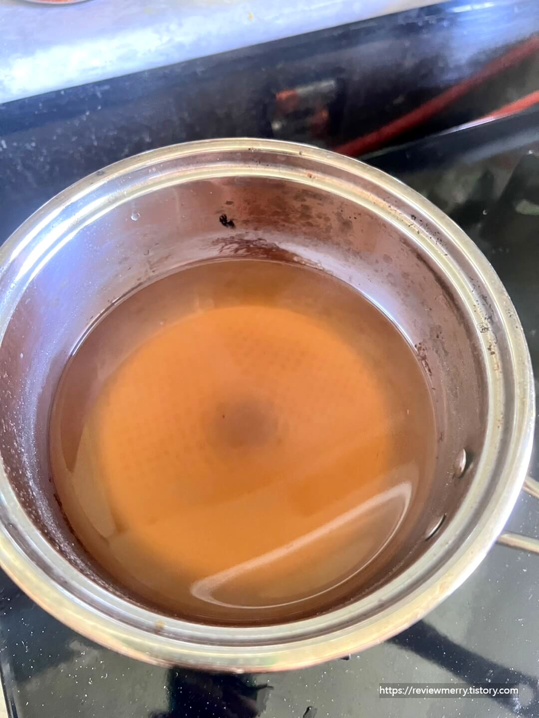 물에 넣은 사진다 녹아 멸치 육수가 우려진 사진