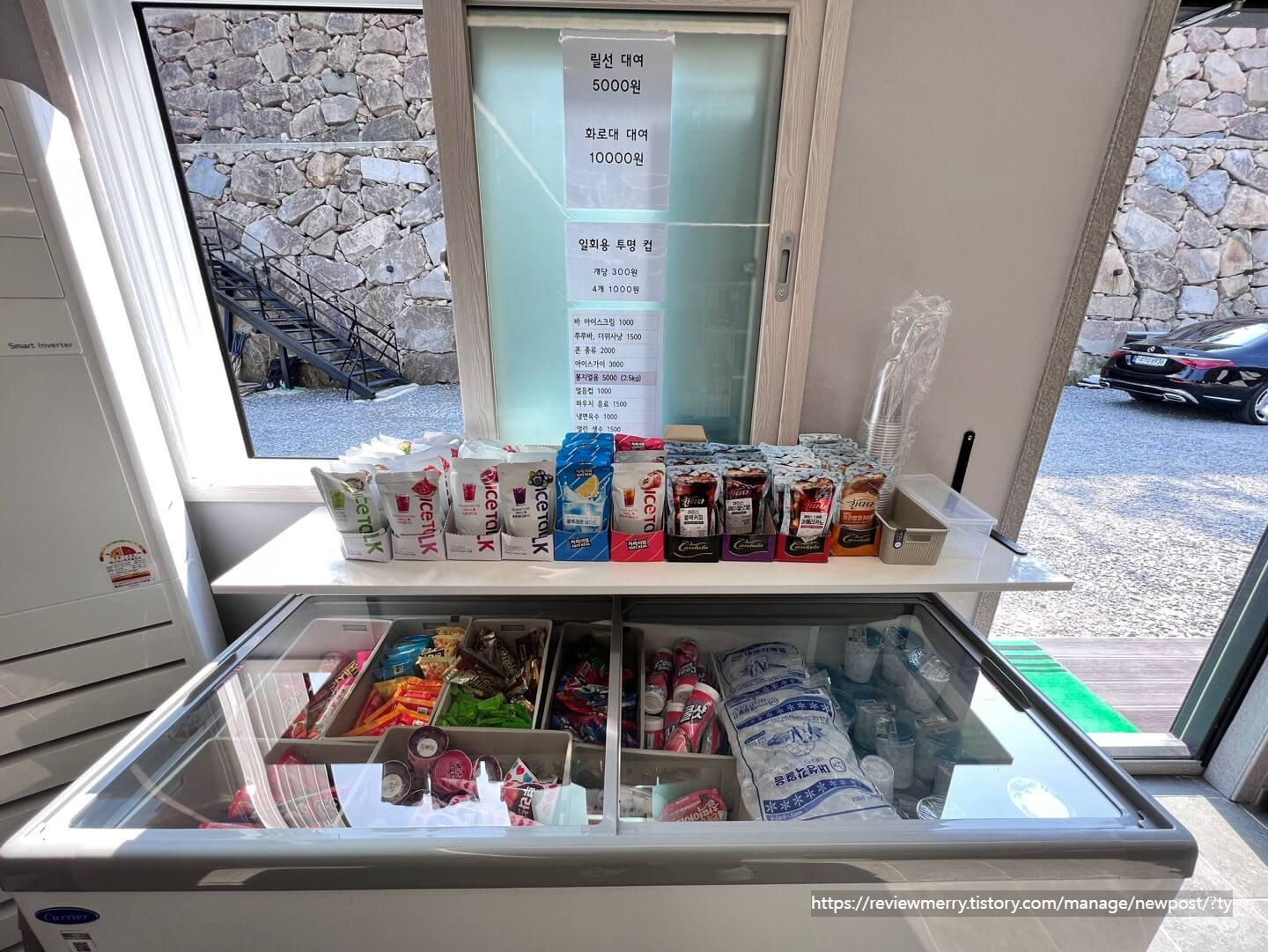 매점에서는 과자, 아이스크림, 음료, 술 등 정말 다양하게 판매하고 있습니다.
