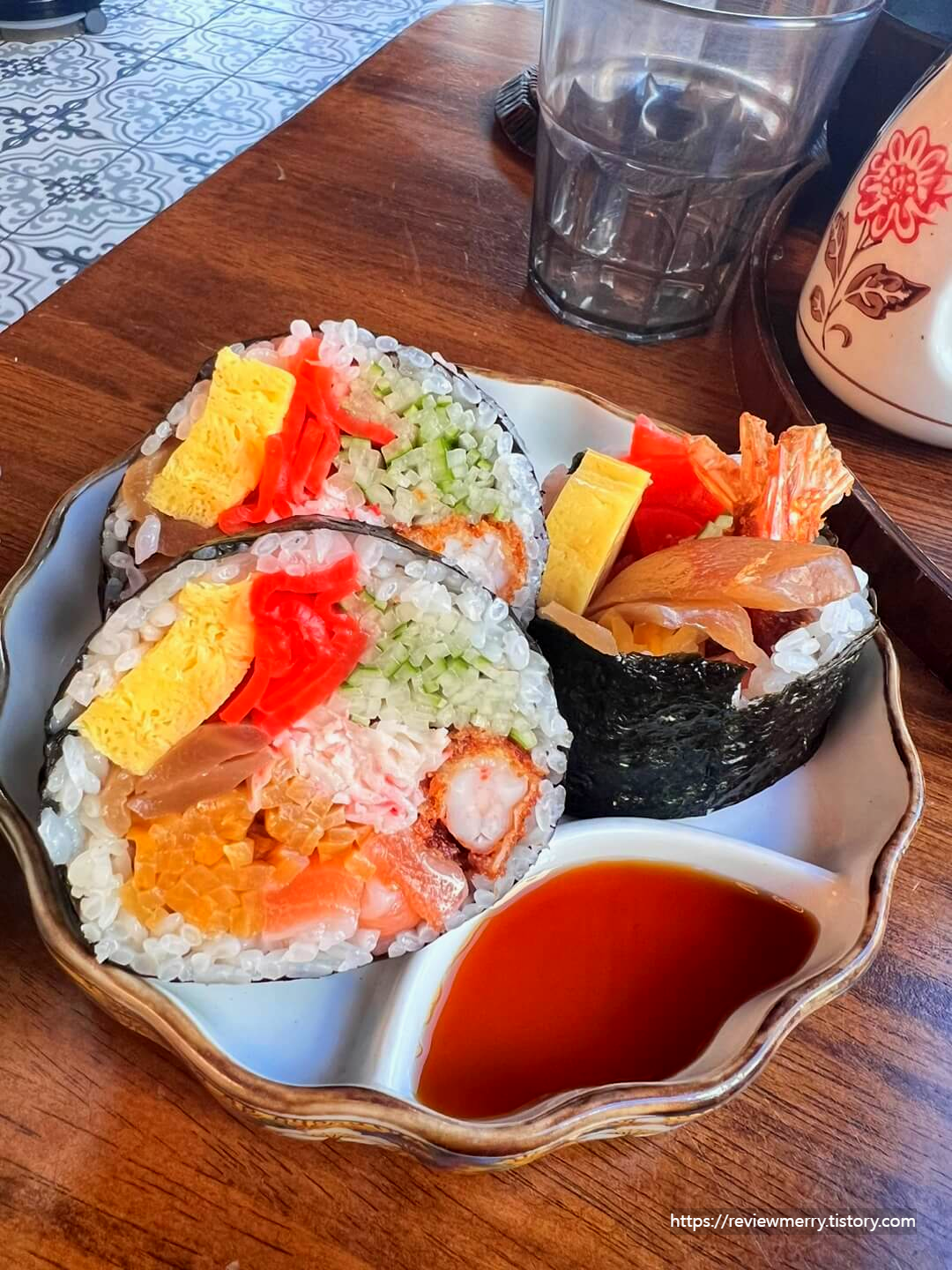 다음번에 재방문한다면 그때는 후토마키만 잔뜩 시켜서 먹자고 남편에게 신나서 이야기할 정도로 너무 제 입맛에 맞았어요! 경주와 용인에서 후토마키 맛집을 간 2곳을 제외하고 후토마키가 항상 실패했었는데.. 이곳이 추가되었답니다!