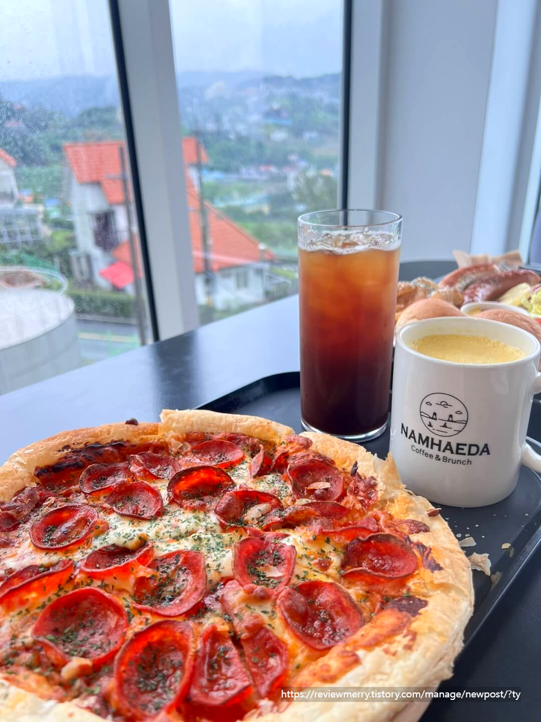 저는 식사를 하고 오지 않아서 식사 메뉴로 페페로니 피자와 남해다 브런치를 주문했답니다.