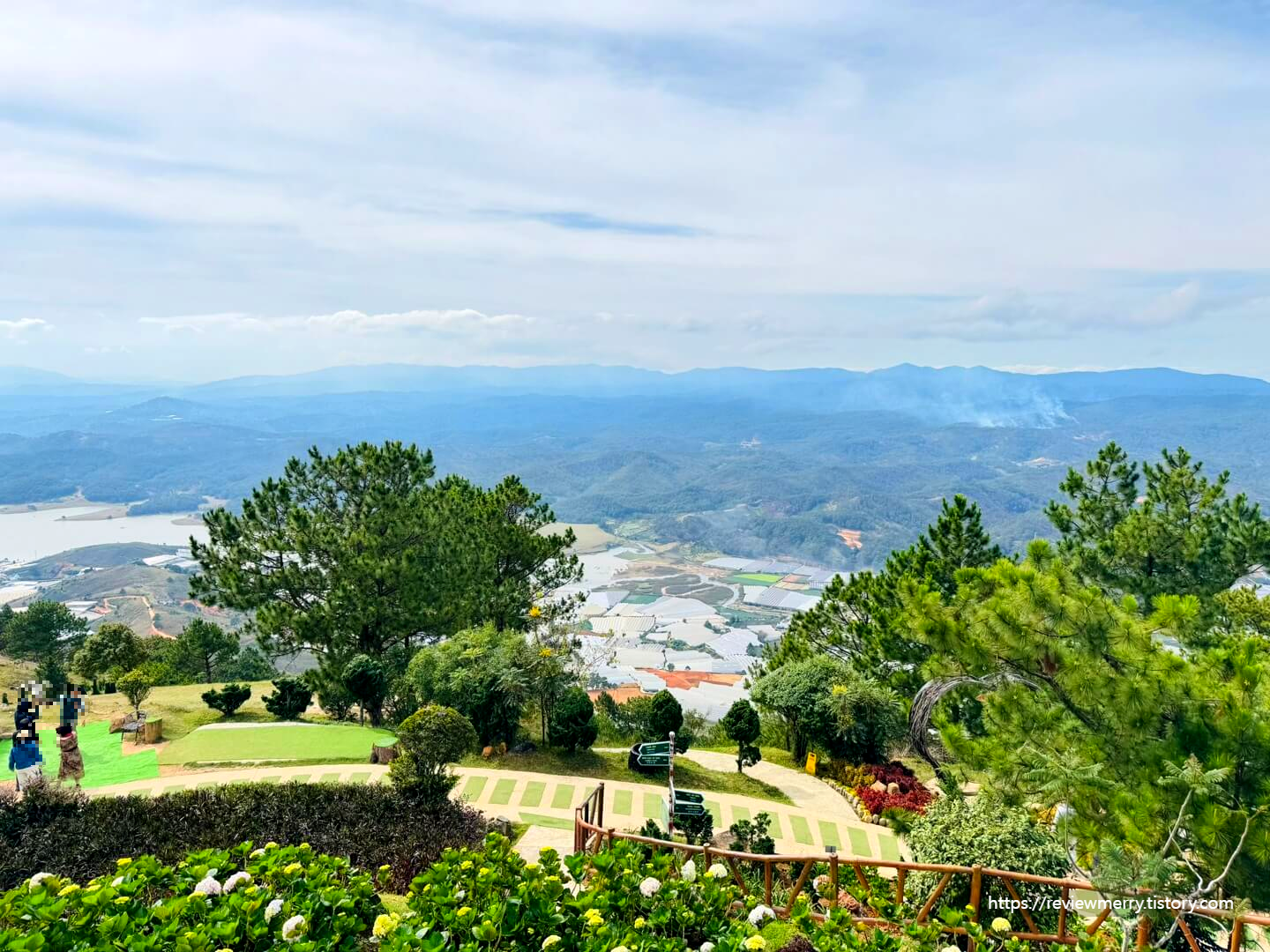 베트남 달랏이 한눈에 담기면서 하늘과 가까이 있는듯한 느낌과 산과 바다까지 보이는 전망이 정말 멋있었어요.