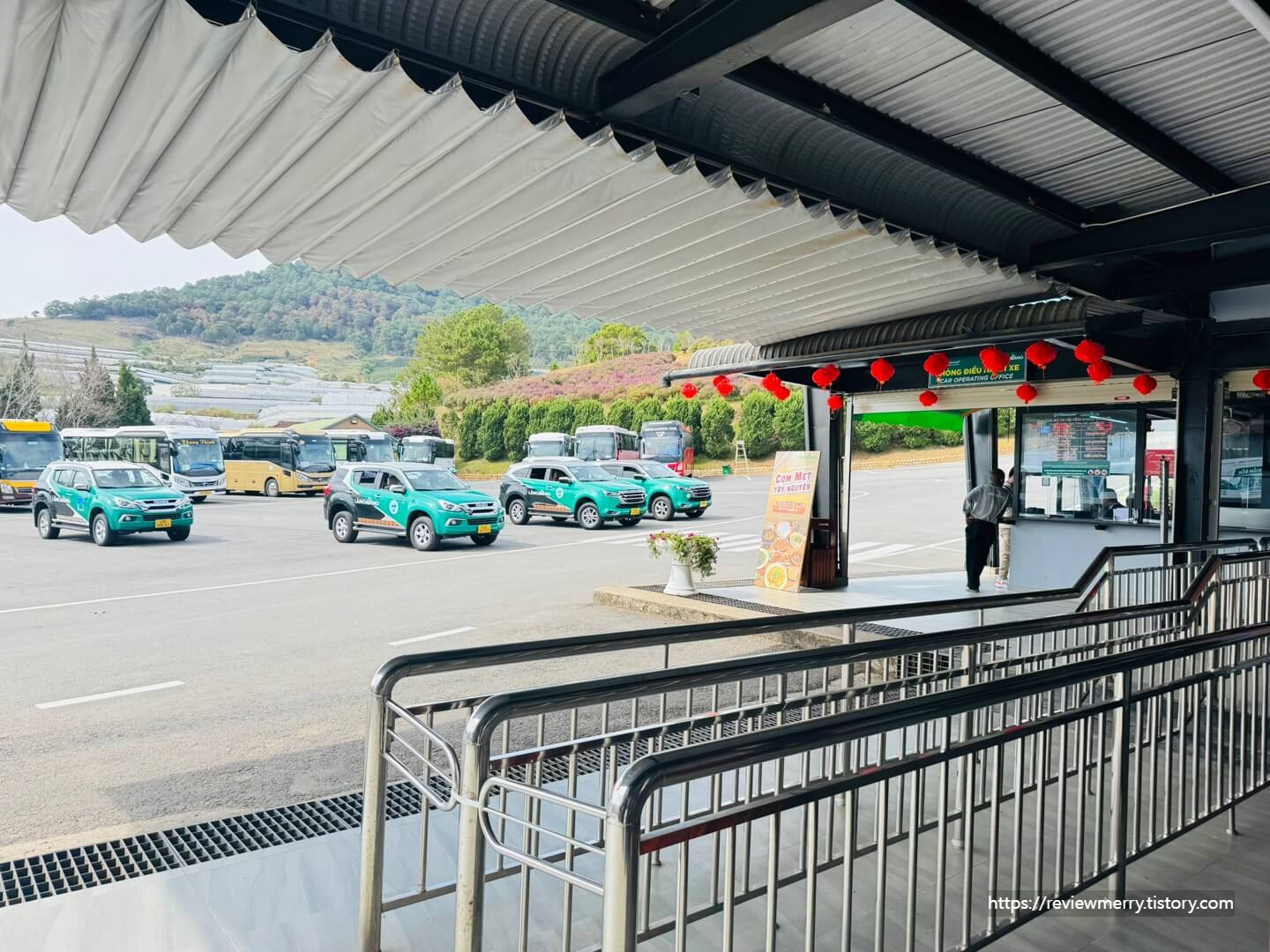랑비앙산은 꽤 높은 곳에 위치해 있는데 이 전망대까지 걸어 올라가는 것도 가능하지만 소요시간이 대략 3시간 정도라 지프차 투어로 올라가는 걸 추천드려요! 이 지프차는 입장료와는 또 별도로 티켓을 끊어야 한다는 점 참고해 주세요.