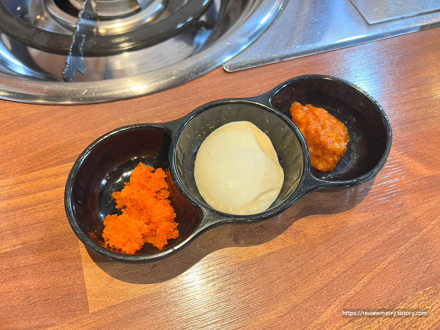 특히 함께 제공되는 묵사발, 마요네즈, 날치알이 굉장히 맛있었어요!