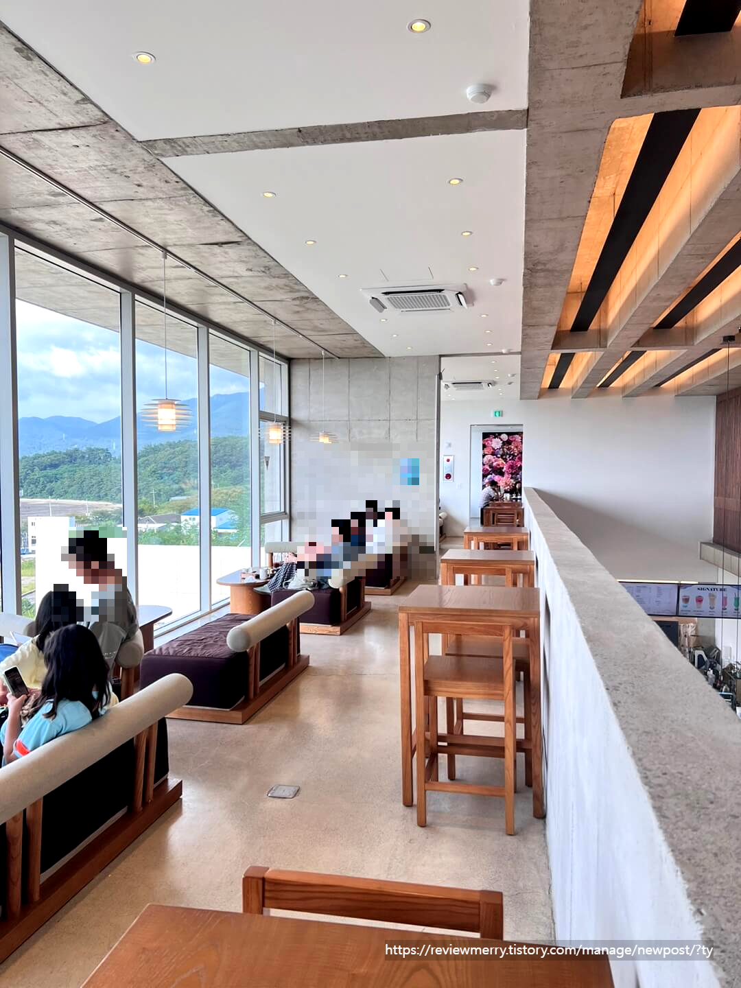특히 창가 쪽 좌석은 사천의 푸른 앞바다를 그대로 경관 할 수 있어서 정말 인기가 많았고 실제로 그 자리에 착석해 보니 풍경과 맛있는 커피, 빵을 함께 즐기니 너무 좋았답니다.