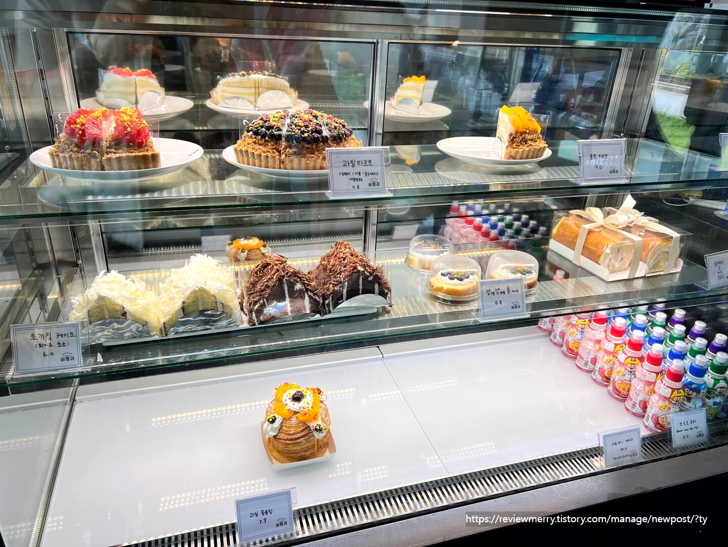 베이커리뿐 아니라 이렇게 큰 타르트, 몽블랑, 토끼집 케이크 등 여러 케이크 종류들도 있으니 취향에 맞춰 같이 즐겨보셔도 좋을 것 같습니다. 특히 타르트의 경우 올라간 재료의 양과 크림의 양이 정말 두꺼워서 맛있어 보였답니다.