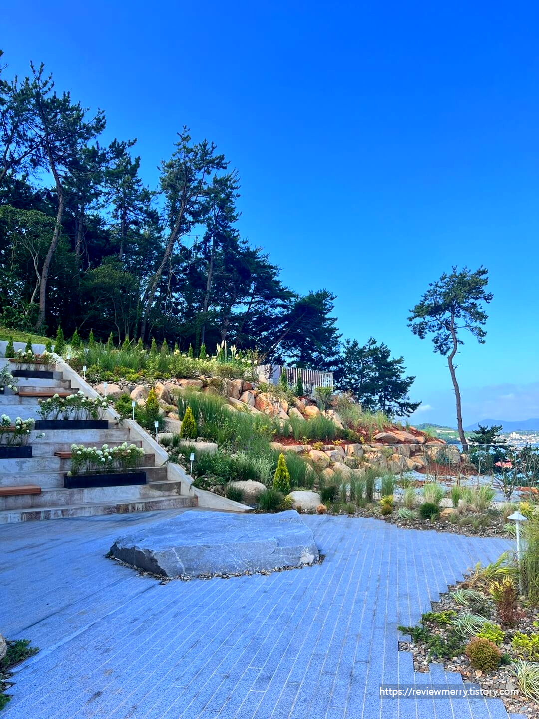 초록초록한 식물들과 푸른 바다를 보며 끝자리로 들어서면 이렇게 넓은 바다 풍경을 보실 수 있어요.