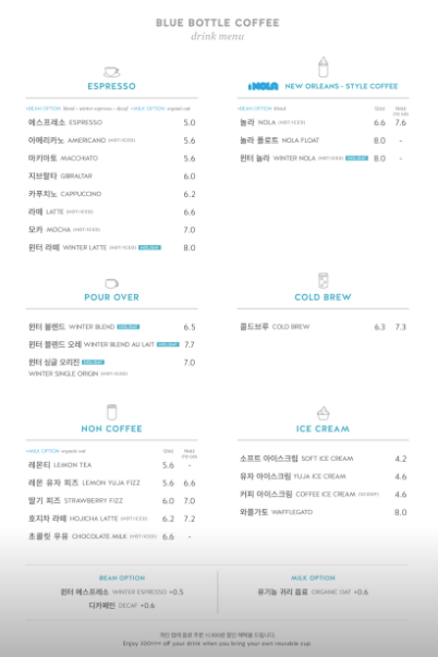블루보틀 메뉴판이에요:-)