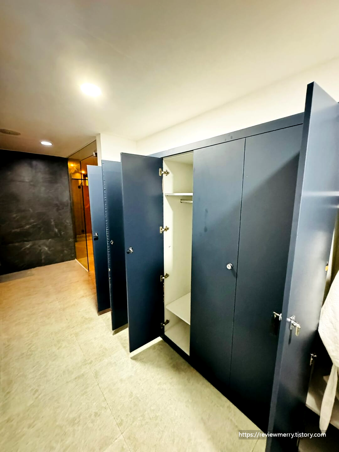 마사지 후에는 샤워로 마무리할 수 있었는데 이렇게 긴 락카를 이용하고 내부에 샤워실이 있었어요.
