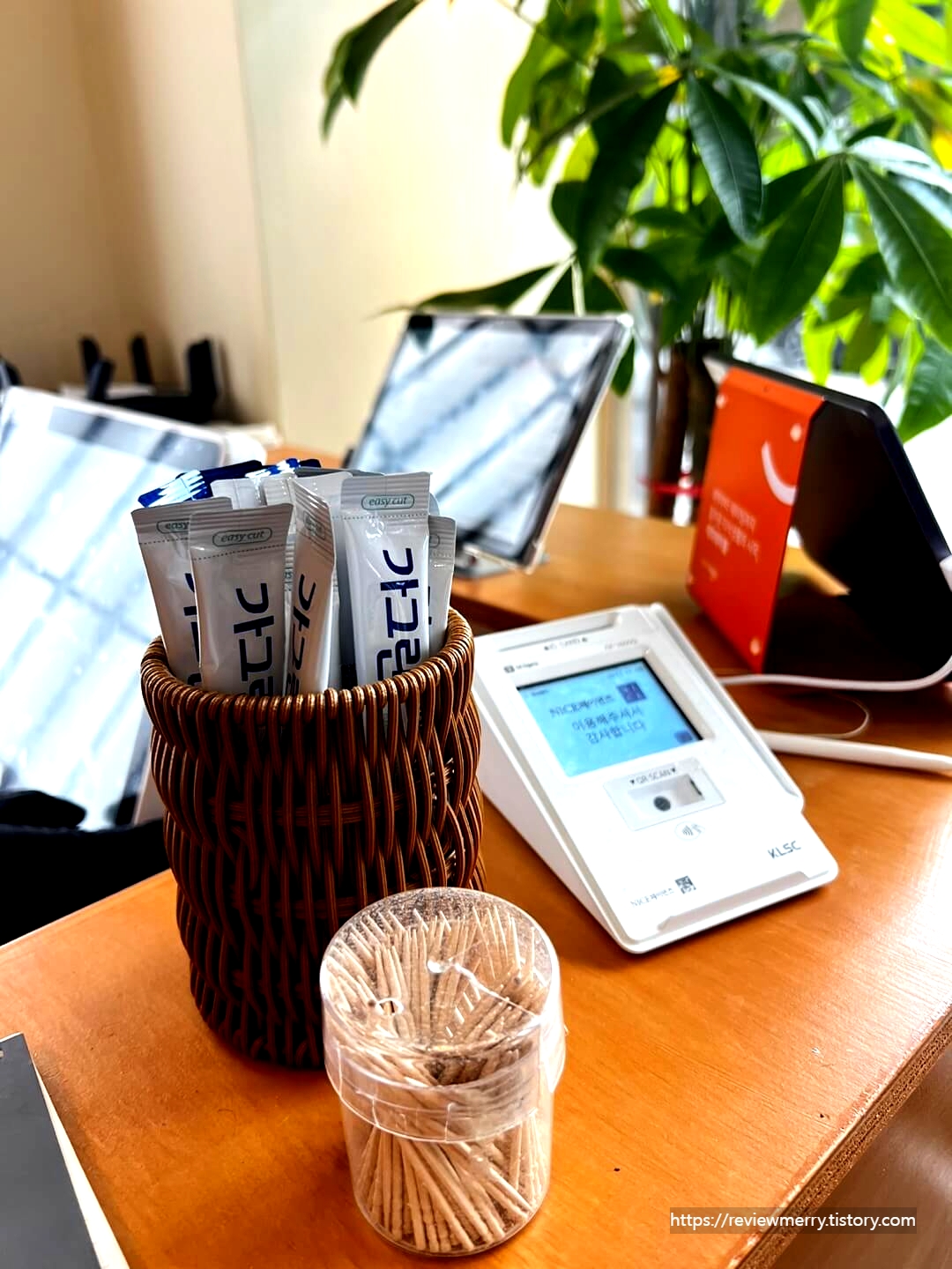 아무래도 식사를 하고 나면 입이 텁텁하고 냄새나진 않을까 걱정스러운데 이렇게 무료로 배치되어 있는 게 너무 좋았답니다.