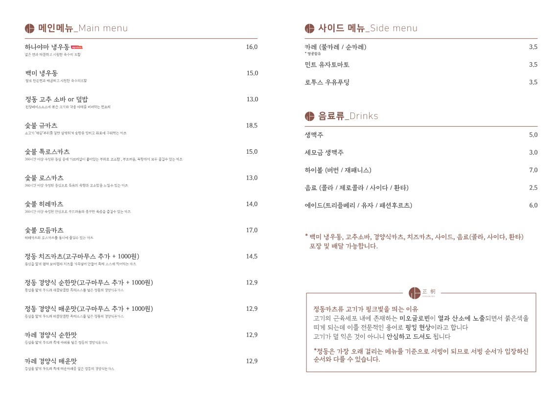 하나야마 냉우동 16,000원 숯불 규카츠 18,500원 정동 경양식 매운맛 12,900원 |