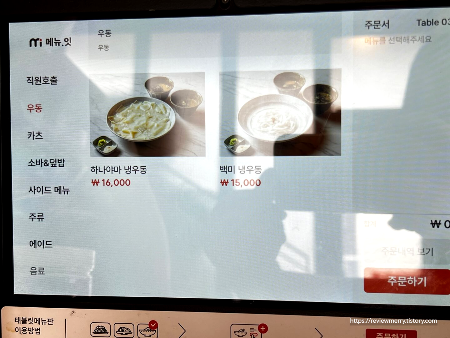 냉우동은 먹어봤어도 납작한 면 따로, 육수 따로 먹는 이런 형태의 냉우동은 처음이라 너무 기대되었답니다.