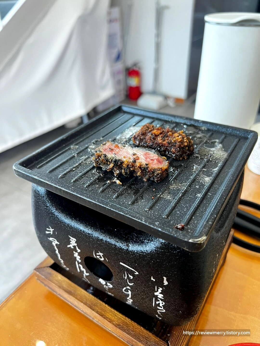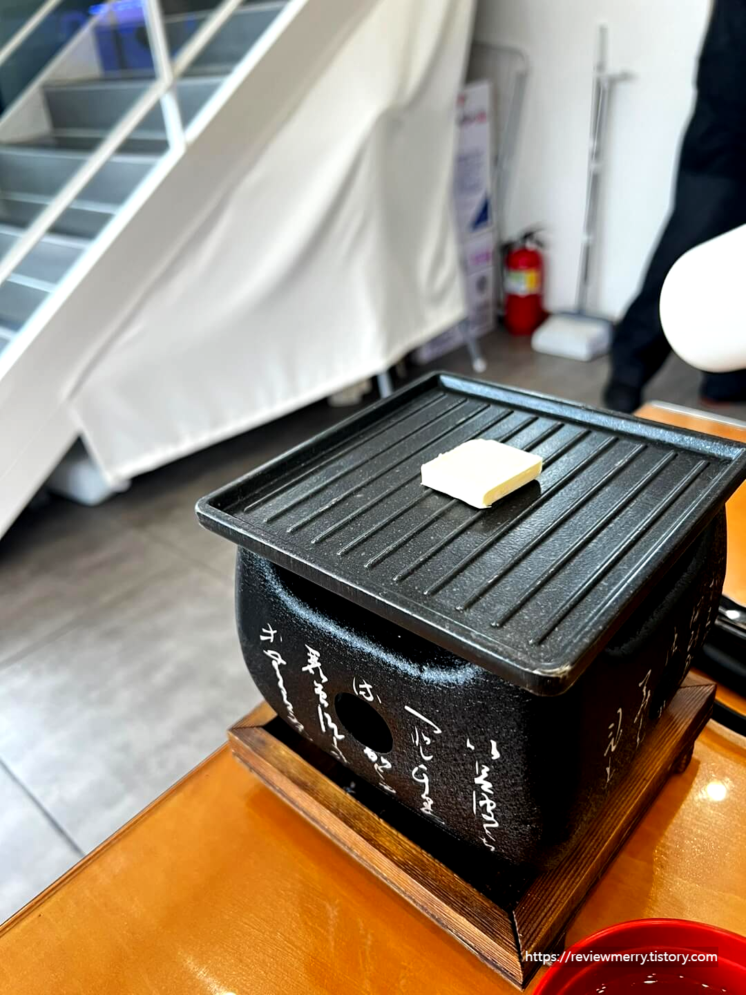 정동 규카츠는 사진처럼 개인화로가 나오고 버터를 살짝 녹여서 기호에 맞게 구워드시면 된답니다.