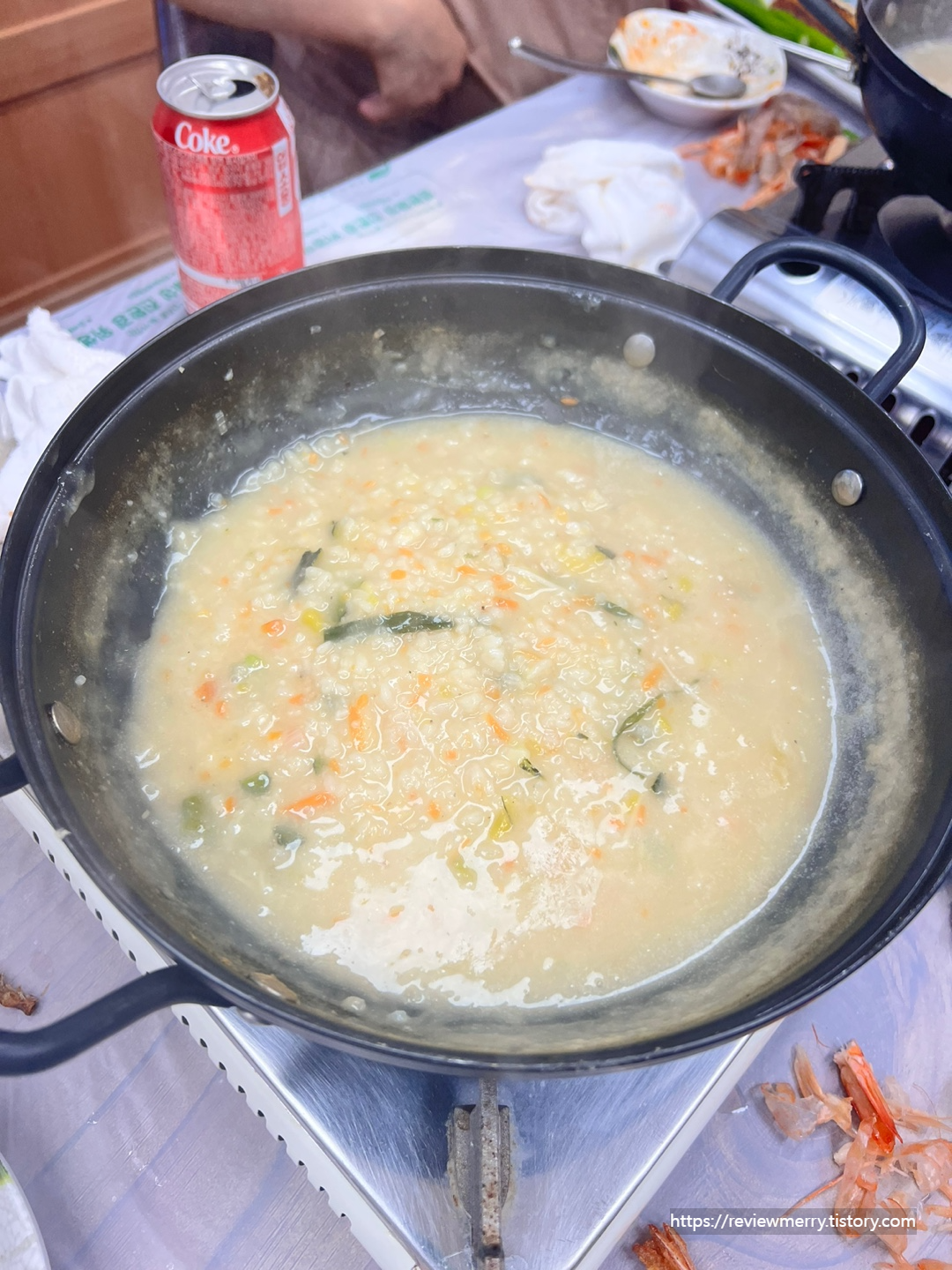 하모 샤부샤부를 해 먹었던 육수에 라면사리 또는 죽을 선택 해 먹을 수 있다.