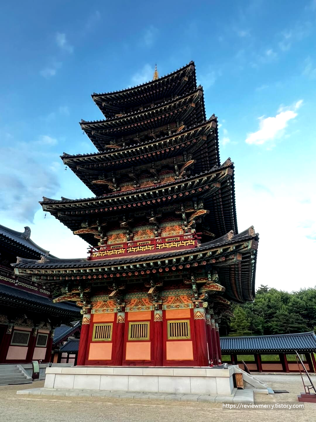 성에서 나와 이번엔 처음 문화단지 내에 들어와서 우측에 있는 공간 5층 목탑에 왔어요!