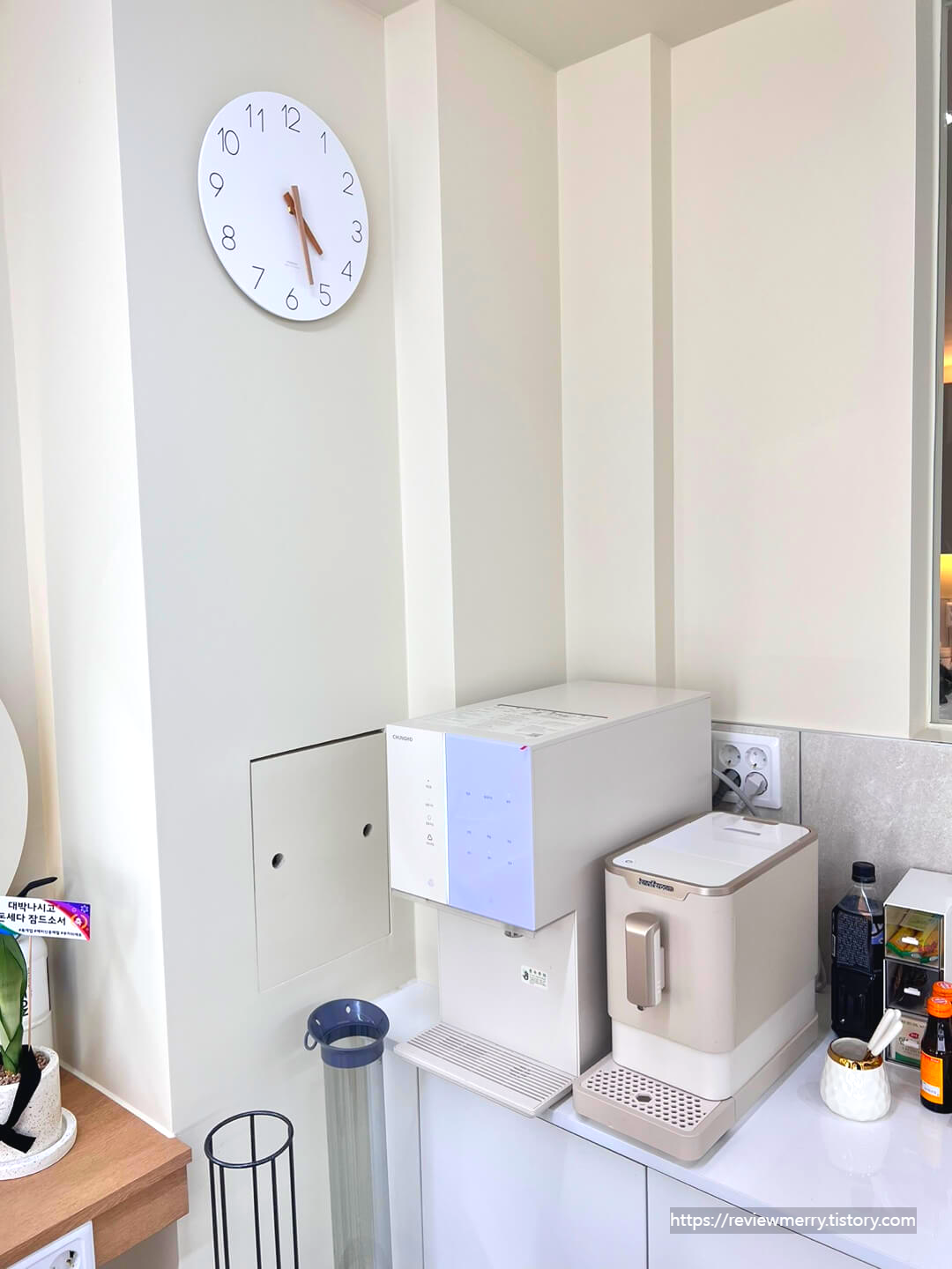 카운터 뒤쪽으로 개인 짐을 보관할 수 있는 사물함이 마련되어 있고, 사물함 옆쪽으로 대기좌석과 커피머신, 약간의 다과가 준비되어 있어서 시술받지 않는 일행이 같이 오더라도 편하게 시간을 보낼 수 있답니다.