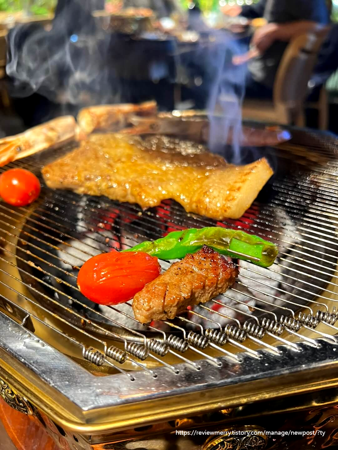 심지어 숯불로 구워 먹는 거라 고기 맛도 좋았지만 화로 겉면을 만져도 뜨겁지 않아서 아이들과도 안전하게 식사할 수 있을 것 같아 너무 좋았답니다.