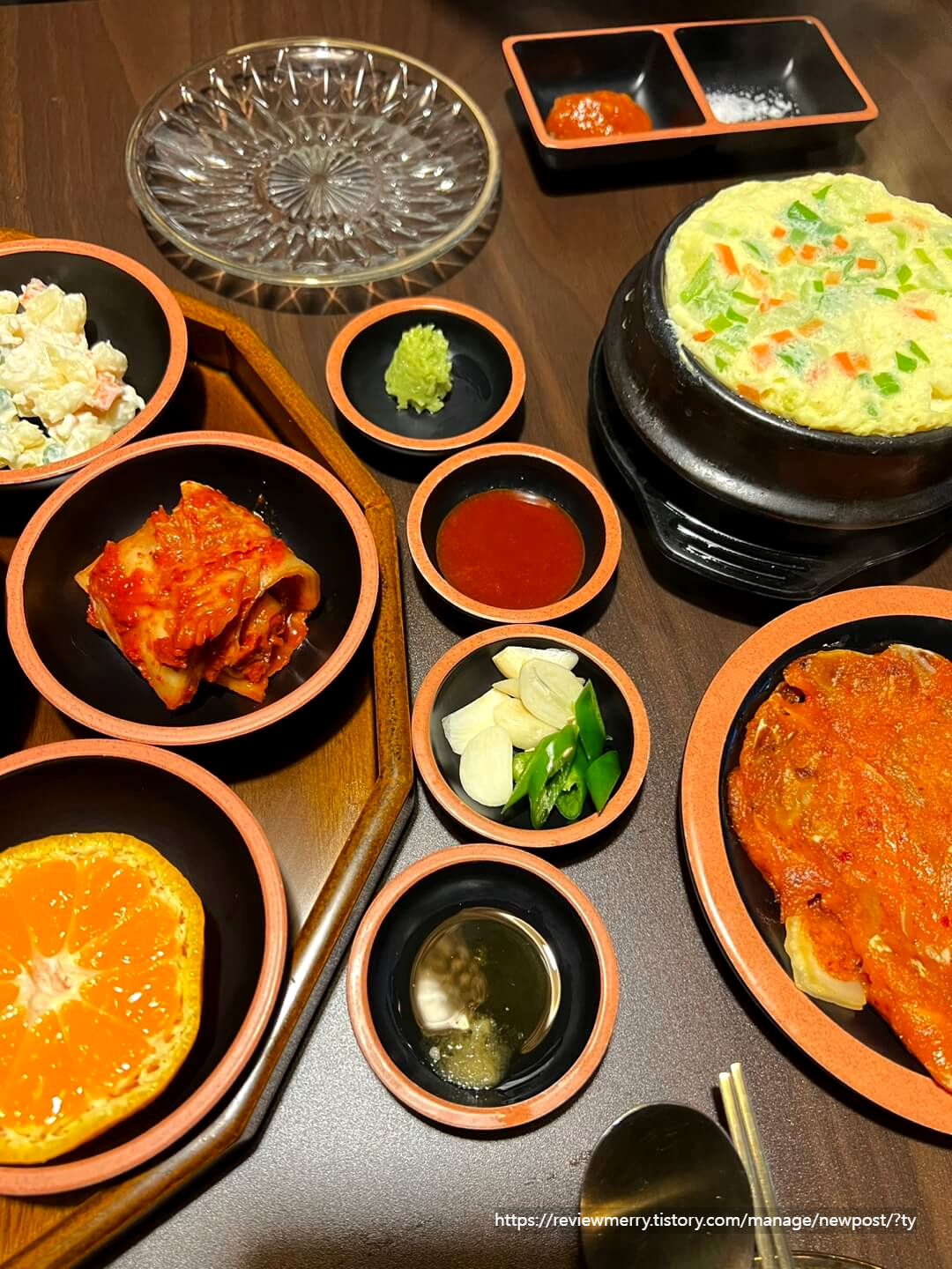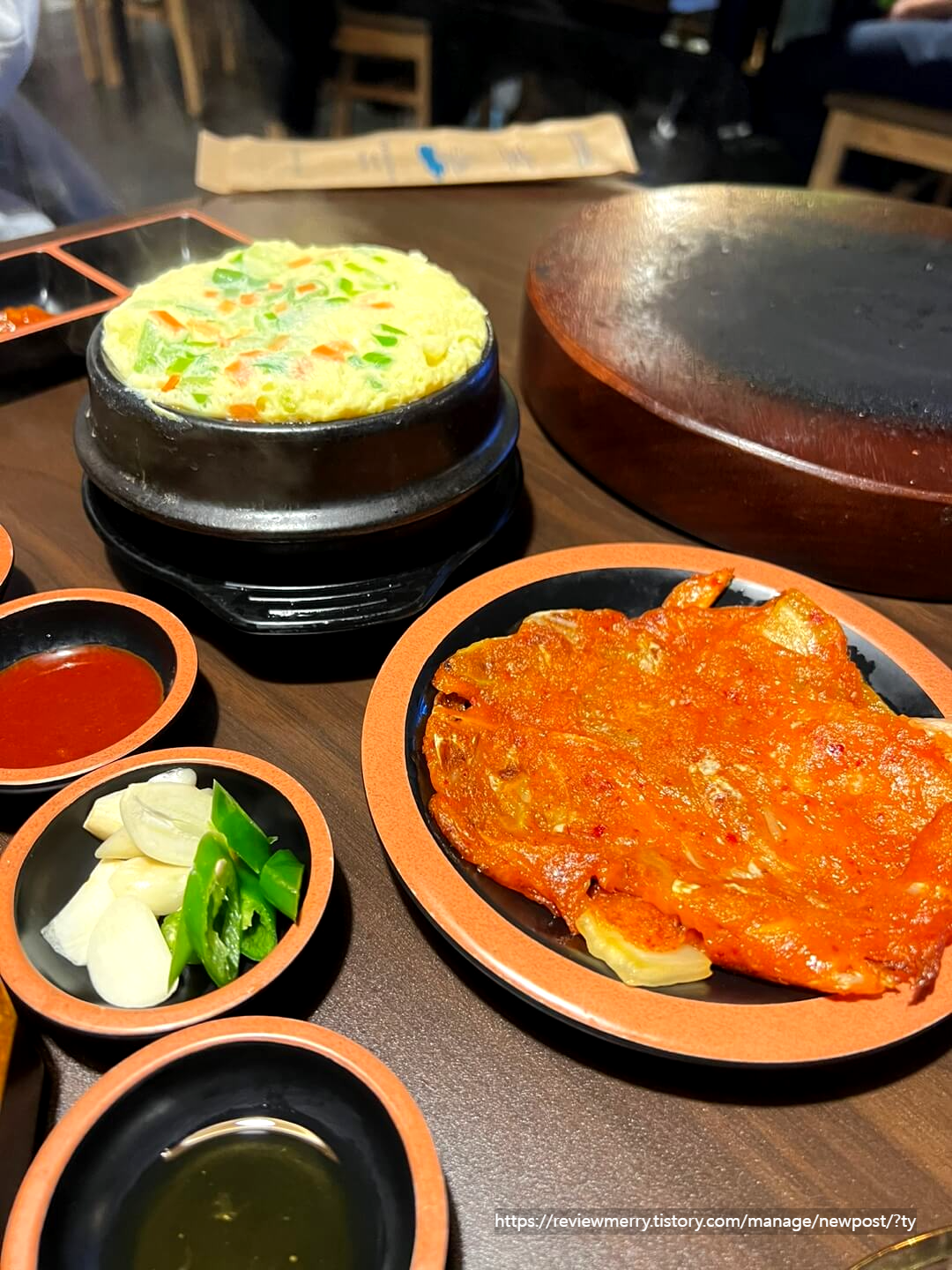 처음 기본반찬을 가져다주신 후에는 김치전과 계란찜까지!!!! 기본으로 주신답니다.