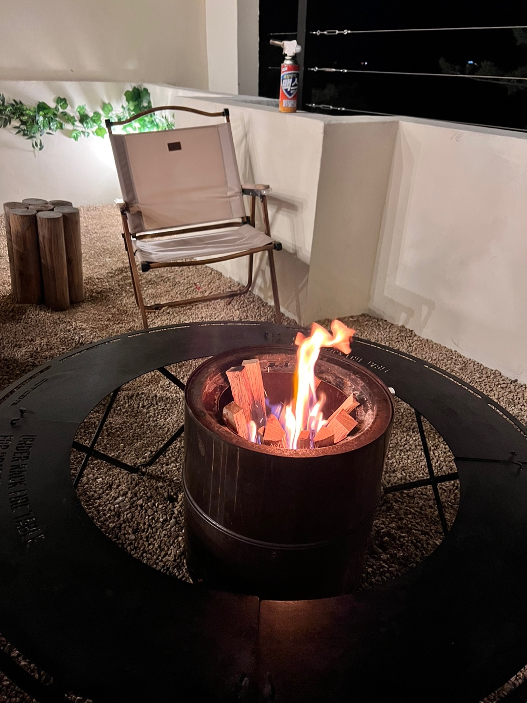 불멍은 미리 옵션으로 선택해야 하며 옵션 미 선택 시 장작이 준비되어 있지 않고, 그 공간은 그대로 이용가능하다.