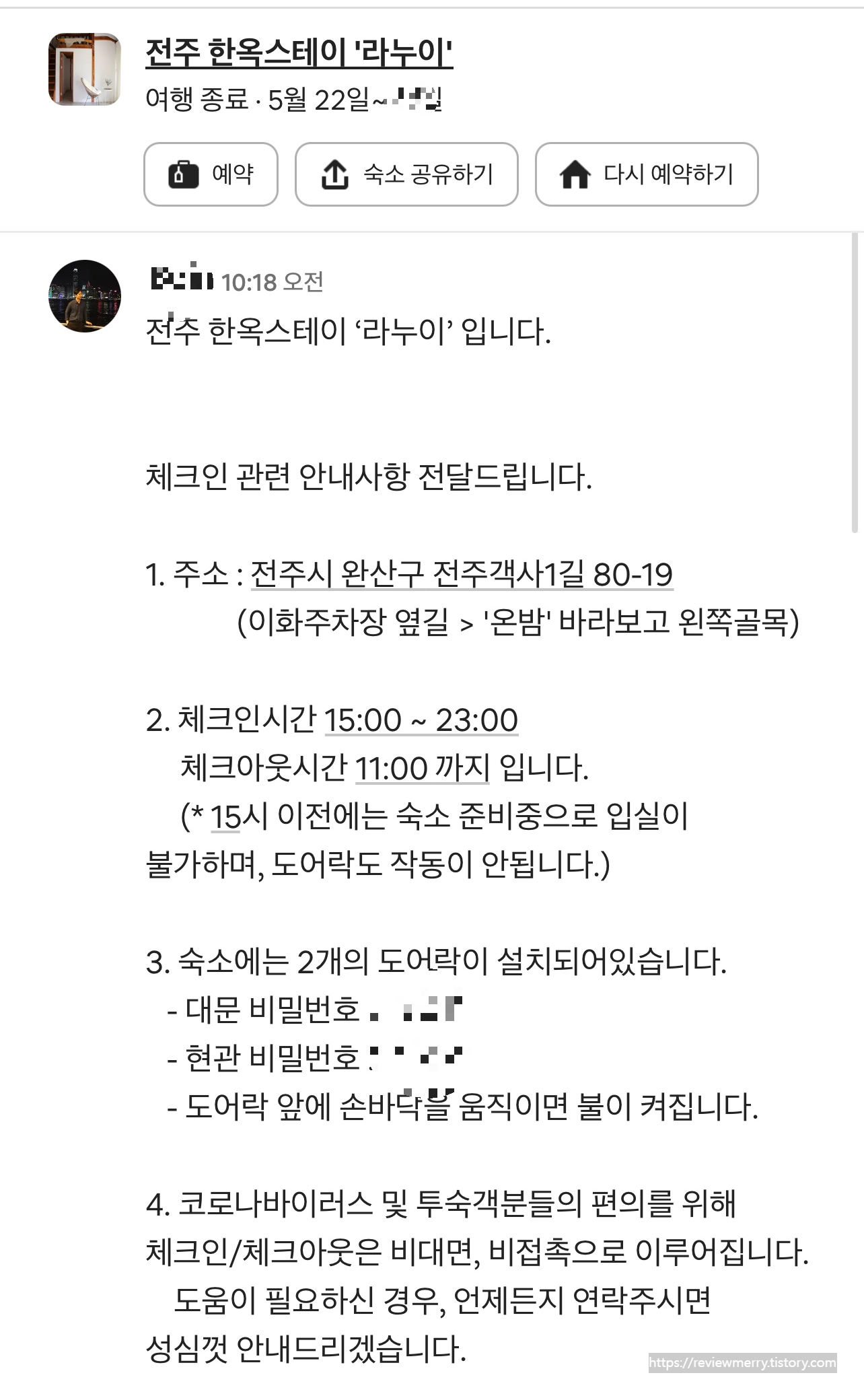 오늘의 여행 리뷰 : 전주 한옥 펜션, 에어비앤비 추천 라누이 / 라누이 블랑슈
