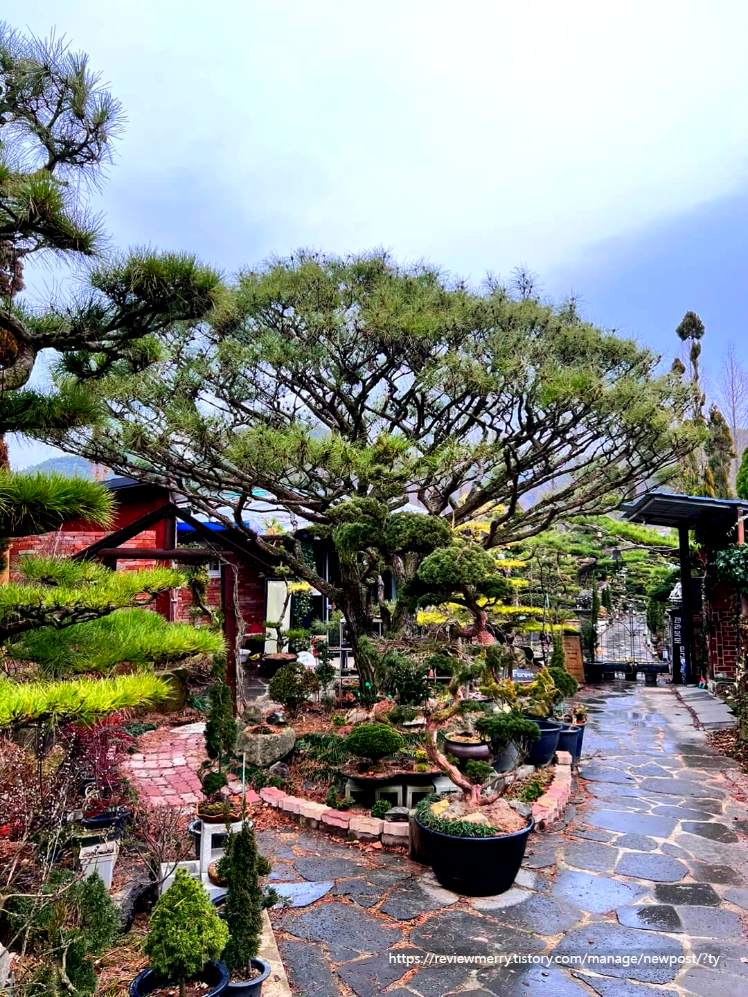 처음 보셨던 제이포렛 간판이 있는 큰 대문을 지나면 이렇게 카페 가는 길목에도 많은 분재, 식물, 나무들이 관리되어 있어요!