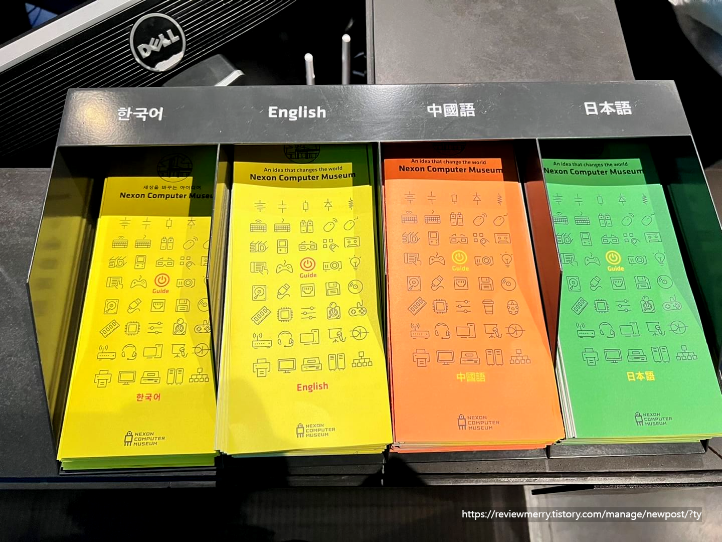 카운터에는 이렇게 한국어, 영어, 중국어, 일본어 버전의 안내문이 배치되어 있어서 각 층의 테마가 무엇인지