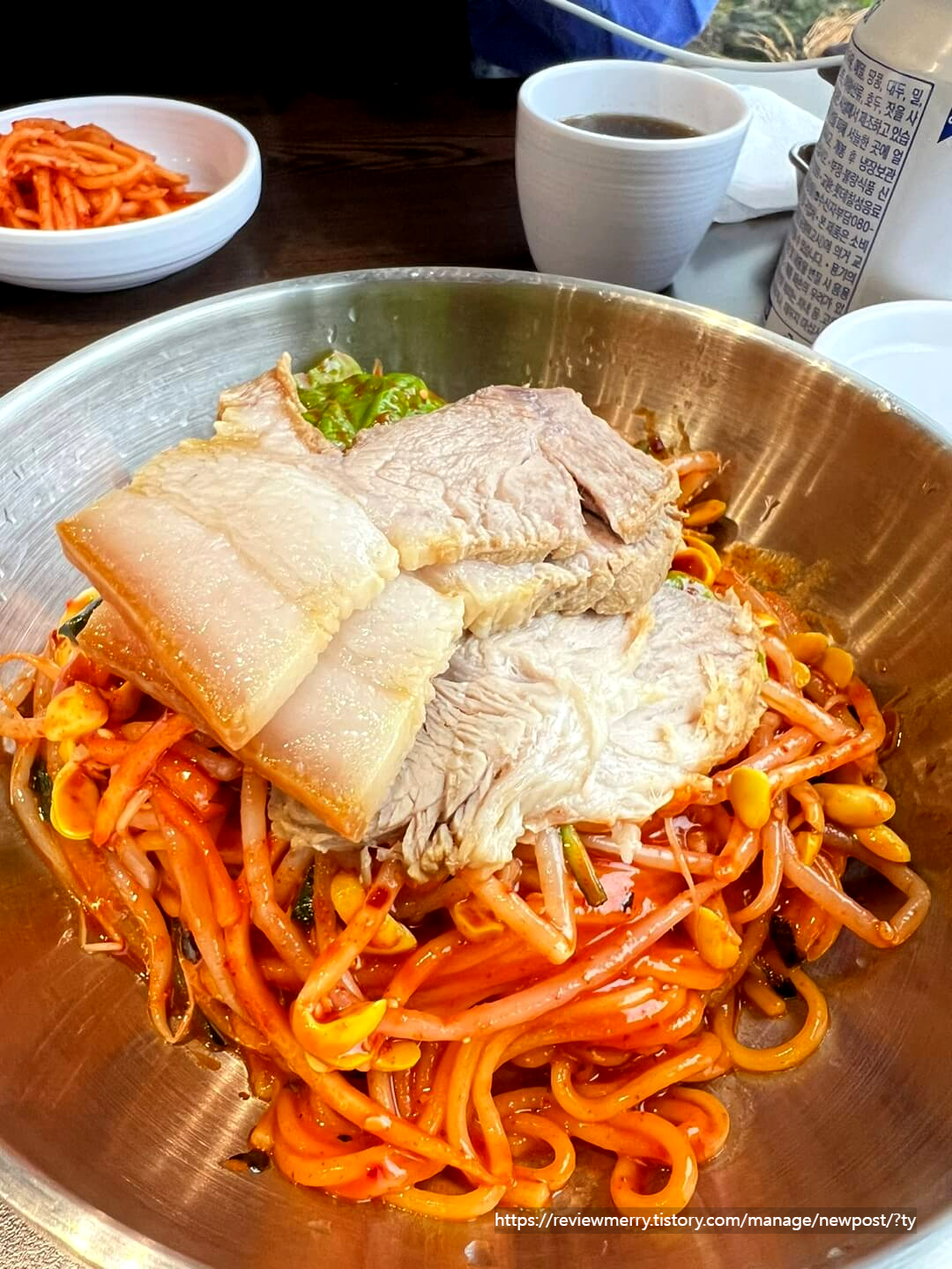 새콤하고 매콤한 비빔국수와 고기를 함께 드시면 정말 조화가 좋았답니다!