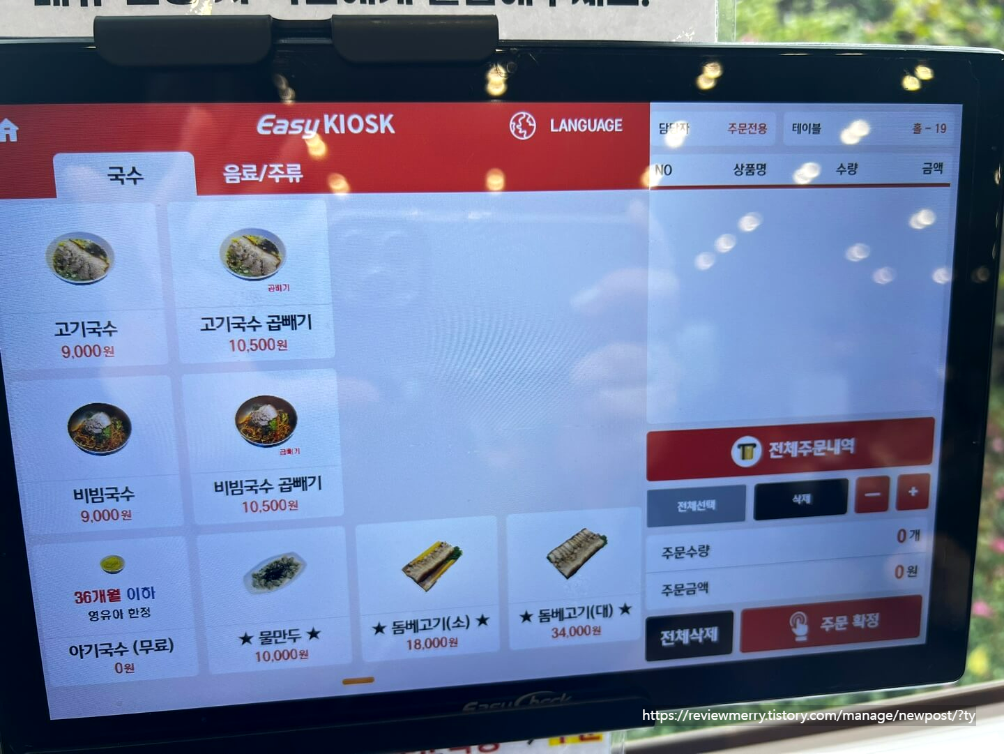 | 고기국수 9,000원 고기국수 곱빼기 10,500원 비빔국수 9,000원 비빔국수 곱빼기 10,500원 물만두 10,000원 돔베고기(소) 18,000원 돔베고기(대) 34,000원 |