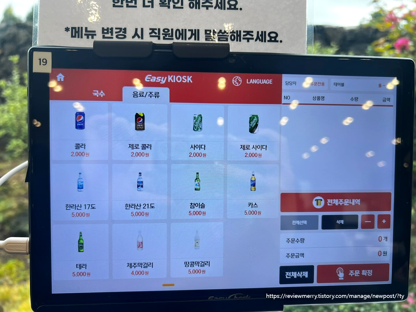 음료와 주류는 캔음료와 소주, 맥주, 제주도 막걸리와 땅콩 막걸리 이렇게 있답니다.