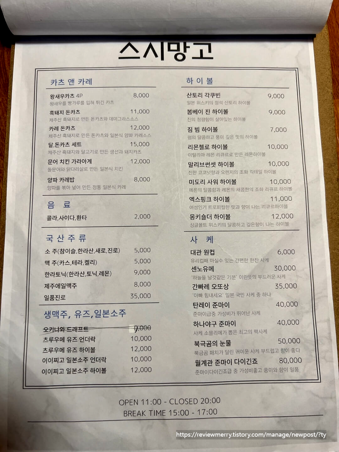 브레이크 타임 15:00 ~ 17:00