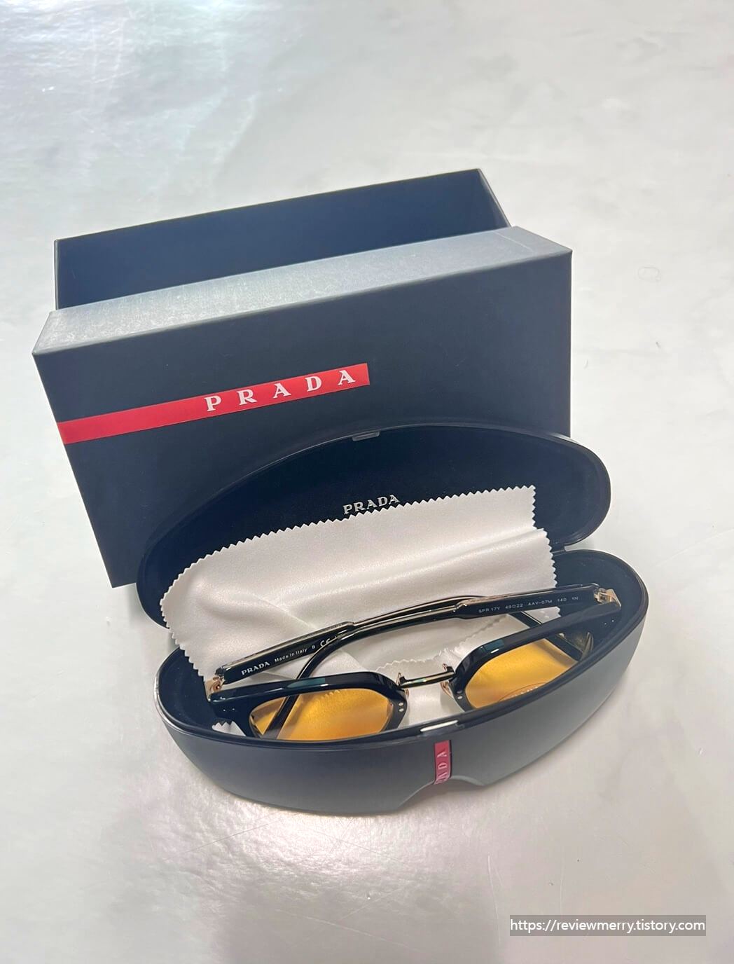 위 사진과 같이 프라다 로고가 적힌 박스와 전용케이스가 제공되는데 렌즈 닦개에는 별도의 로고 없이 일반 닦개가 제공되는 것 같았습니다.
