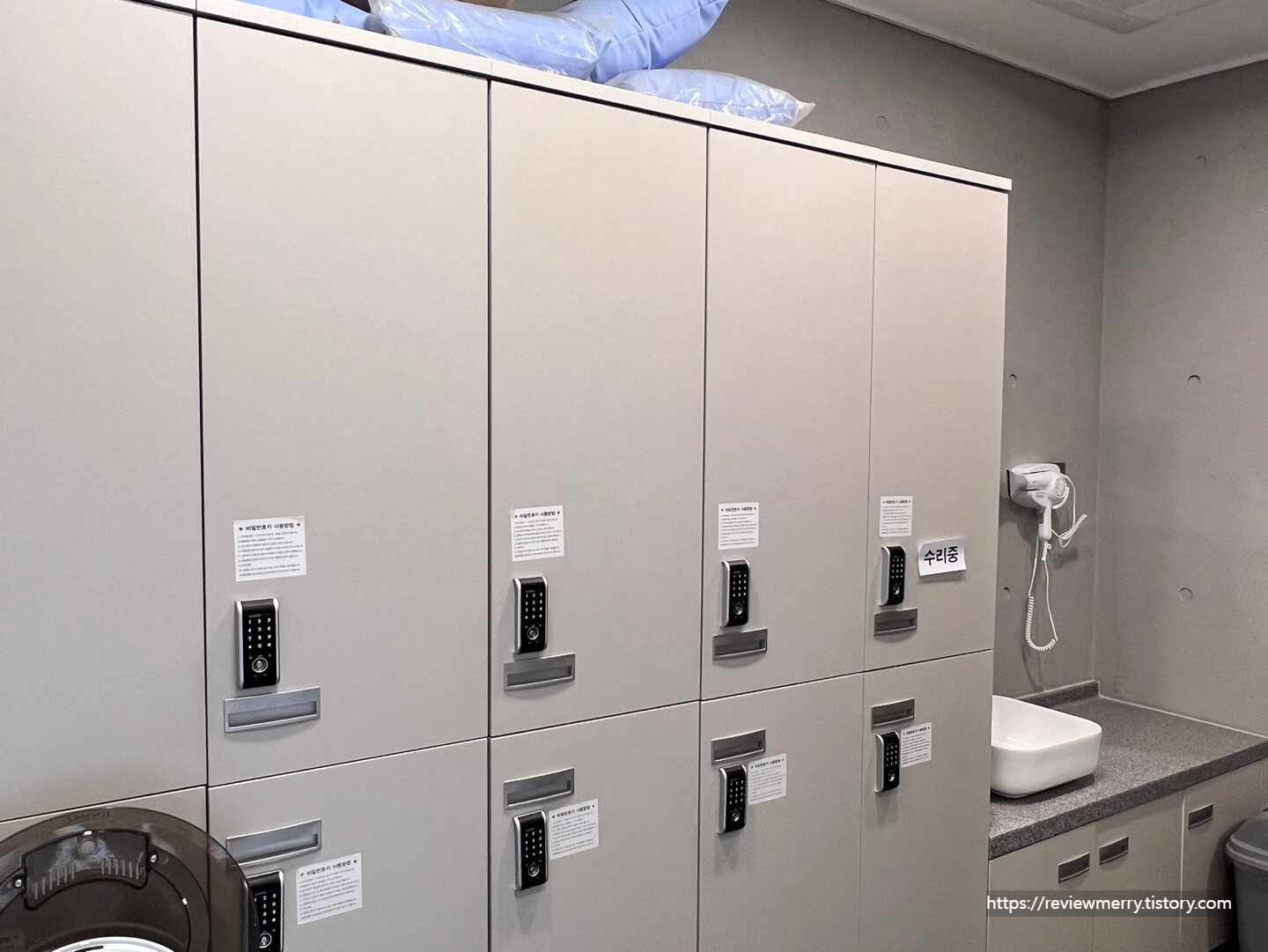 또한 에어드레서 옆에 미니 건조대가 있어 수영 후 옷을 널어두기에도 용이하다.