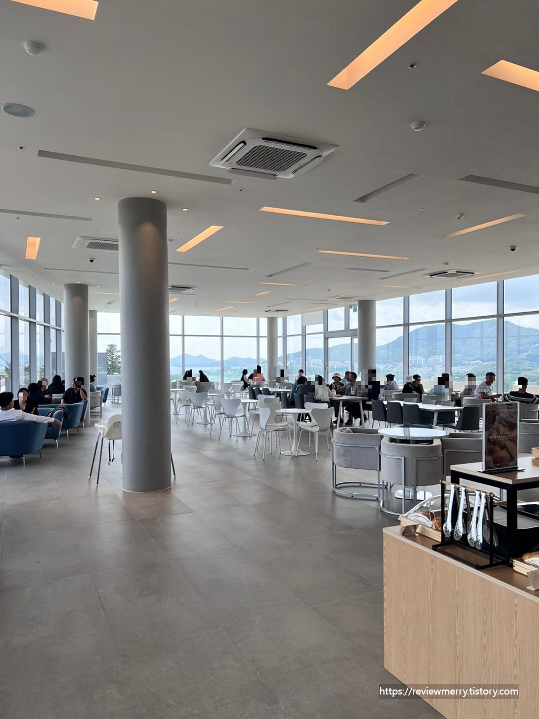 위 사진은 체크인이 이루어지는 스카이포트 건물로 B1에서 체크인이 가능하고 스카이포트 및 수영장, 카페가 한 건물에 위치하고 있다. B2 포트워크를 통해 하이엔드빌라 및 마리스 객실로 이동이 가능하다.