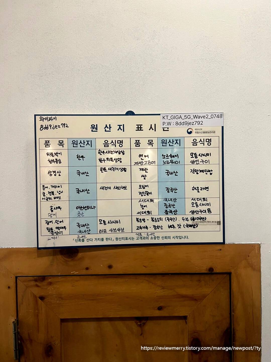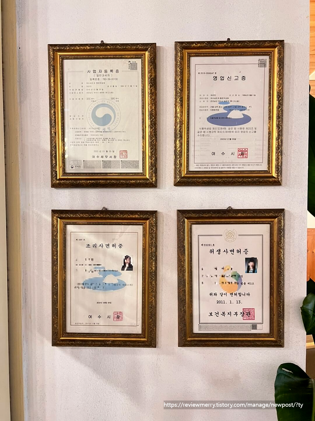 식당에서 영업신고증, 사업자 등록증은 본 적이 있어도 조리사와 위생사 면허증을 걸어둔 식당은 처음이었어요!