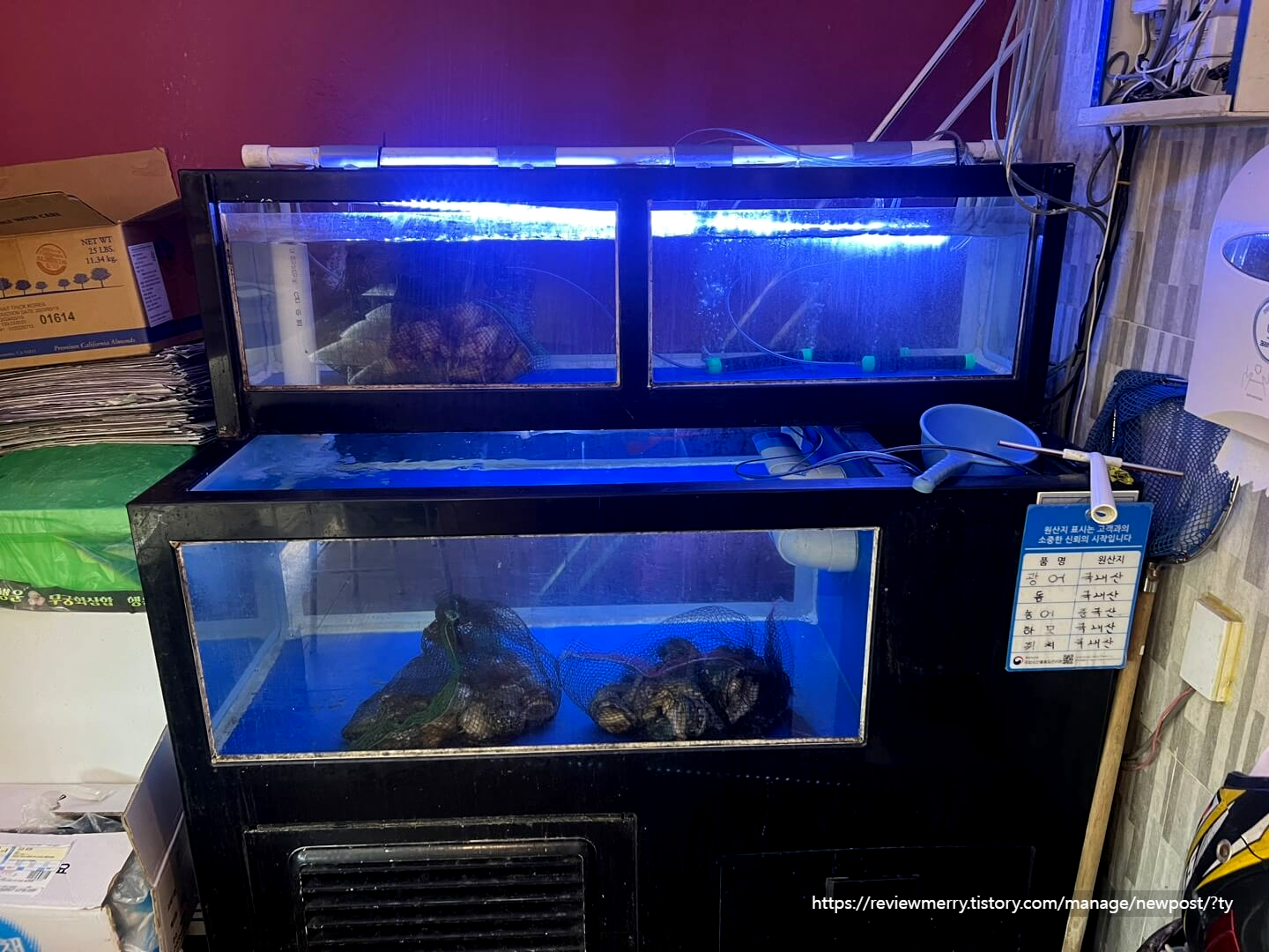 그런데 또 죽은 채로 보관하는 게 아니라 이렇게 수조에 산채로 보관되어 있어서 더 신선하게 해산물을 즐길 수 있어서 너무 좋았답니다.