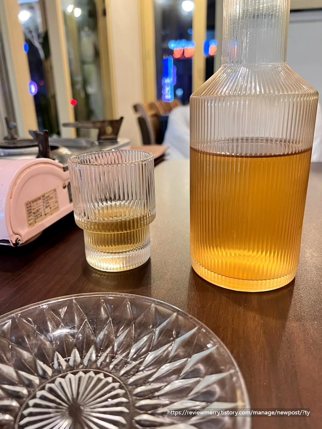 처음 세팅은 물을 가져다주시는데 물도 일반 플라스틱 물병과 생수가 아닌 결명자 차가 담긴 유리병이라 여기서 또 사장님의 사소한 챙김을 느낄 수 있었답니다.