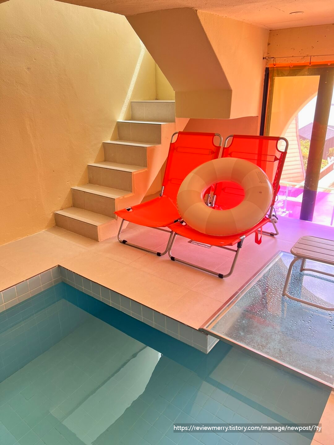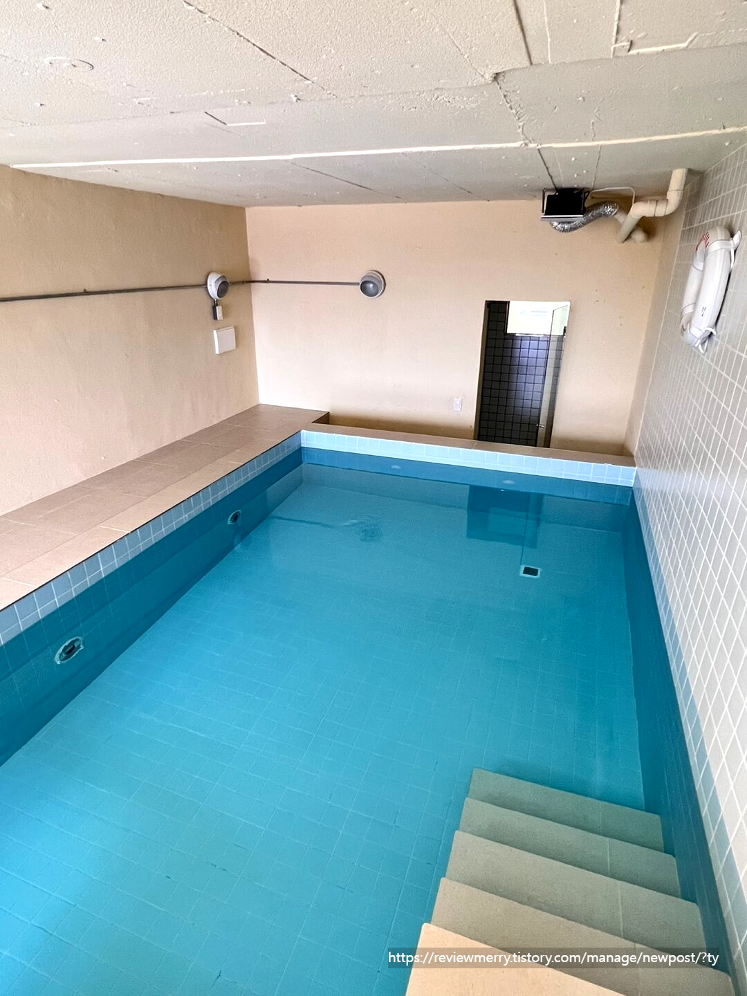 2층 거실에서 위 사진과 같이 계단을 통해 내려오면 이렇게 실내 풀장이 있답니다.