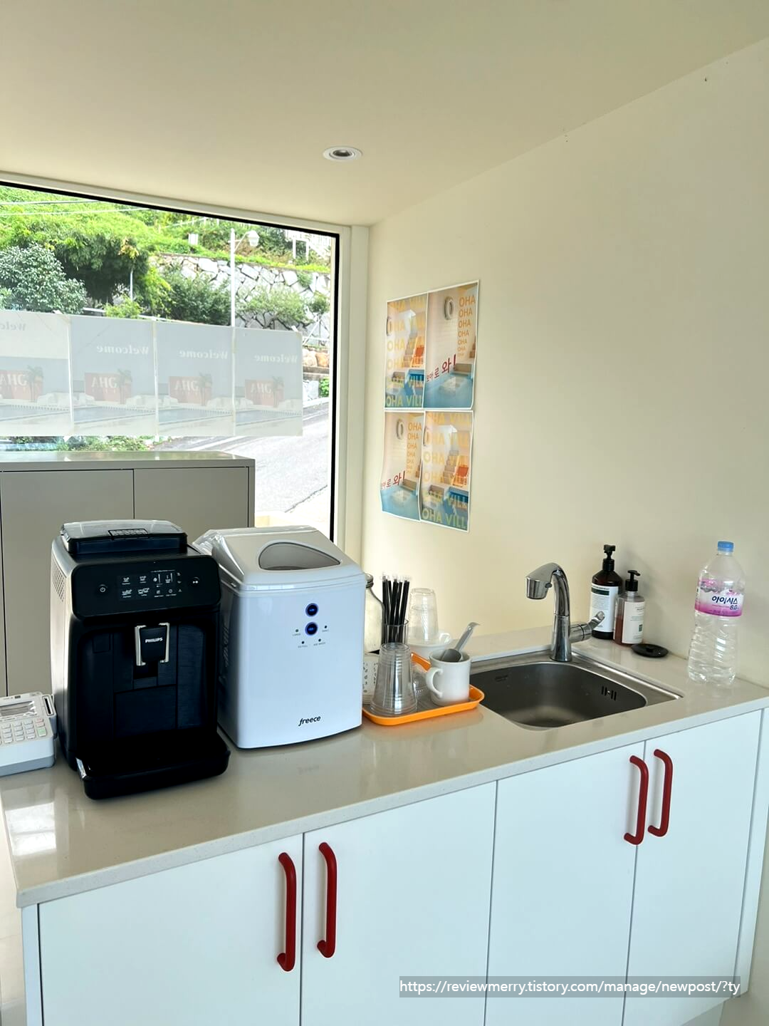 체크인 하우스 내부에는 커피머신과 제빙기가 마련되어 있고 이는 무료로 이용가능하니 남해바다를 구경하며 커피 한잔을 즐겨보셔도 좋을 것 같습니다.
