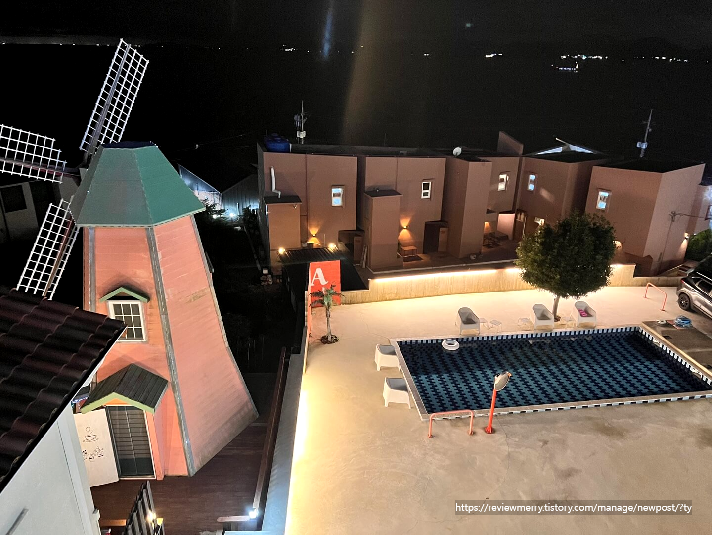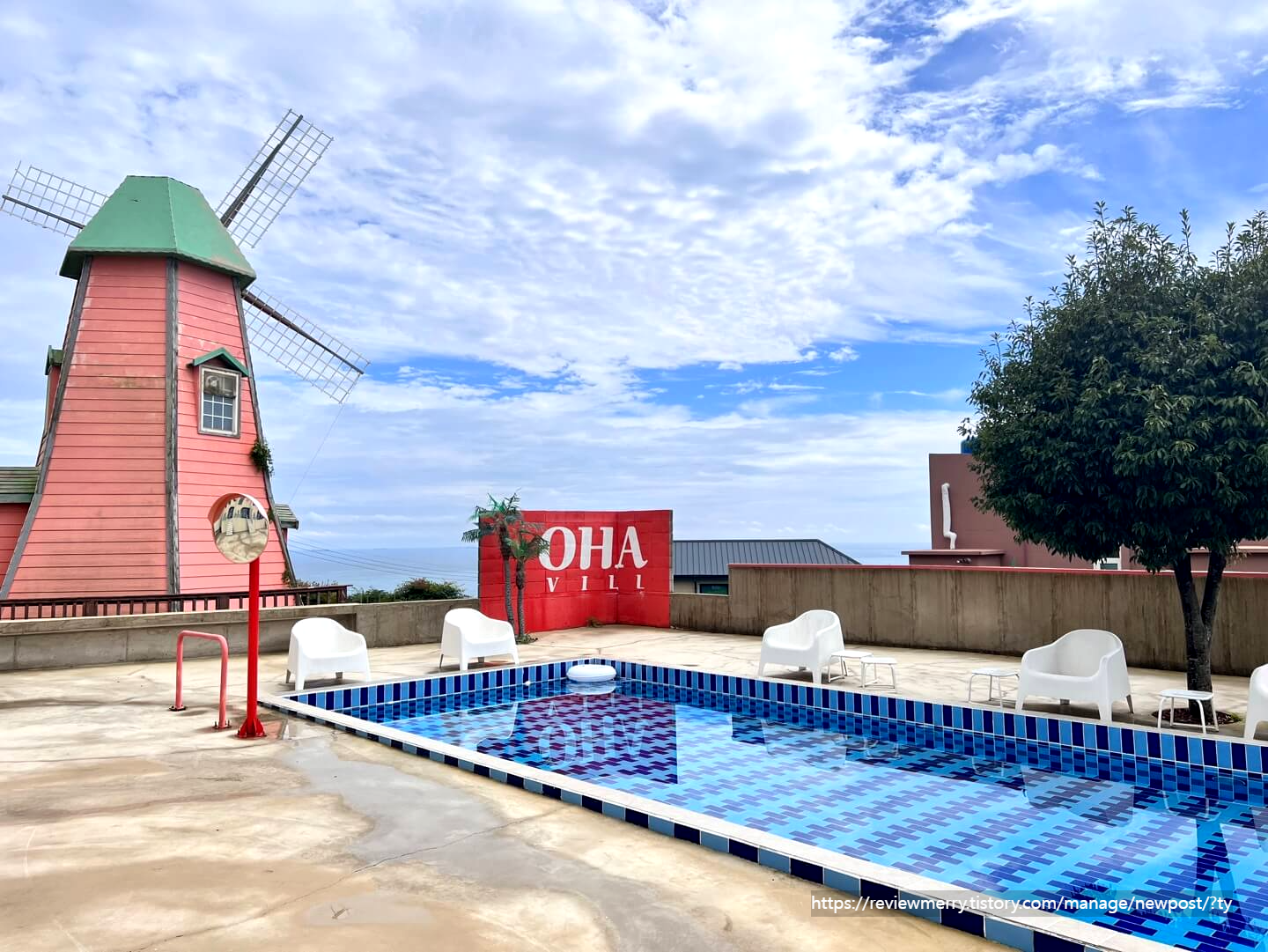 오아빌 야외수영장은 옆에 있는 풍차와 남해바다가 어우러져 이국적인 분위기를 느낄 수 있어서 좋았답니다.