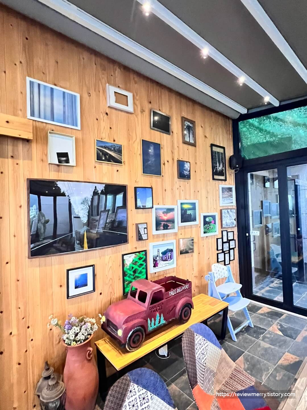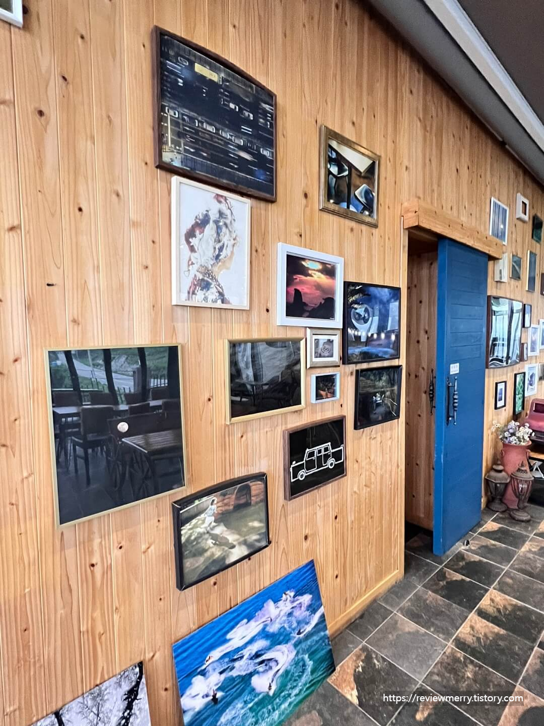마치 미술관에 온듯한 여러 풍경 사진들과 액자들이 벽에 위치하고 있어 구경하는 재미가 쏠쏠하다.