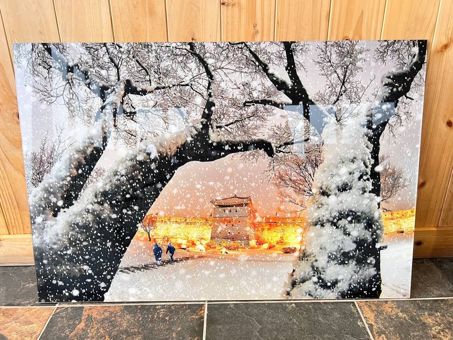 만약 구매가 가능하다면 구매하고 싶을 정도로 눈 내리는 풍경에 한국의 미가 깃들여진 산성의 모습이 마음이 평화로워지는 느낌을 주었기 때문이다.