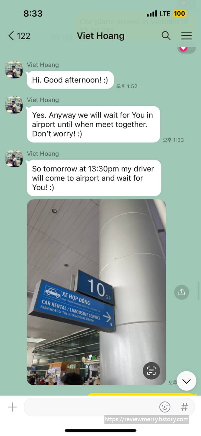 또한 제가 입국심사가 오래 걸려 예약한 시간보다 늦게 도착하면 어떻게 하는지, 환전할 시간을 기다려 줄 수 있는지, 무이네에서 호찌민으로 가는 시간을 여러 번 변경하였을 때도 모두 이해해 주고 저희 여행일정에 맞춰주셨답니다.