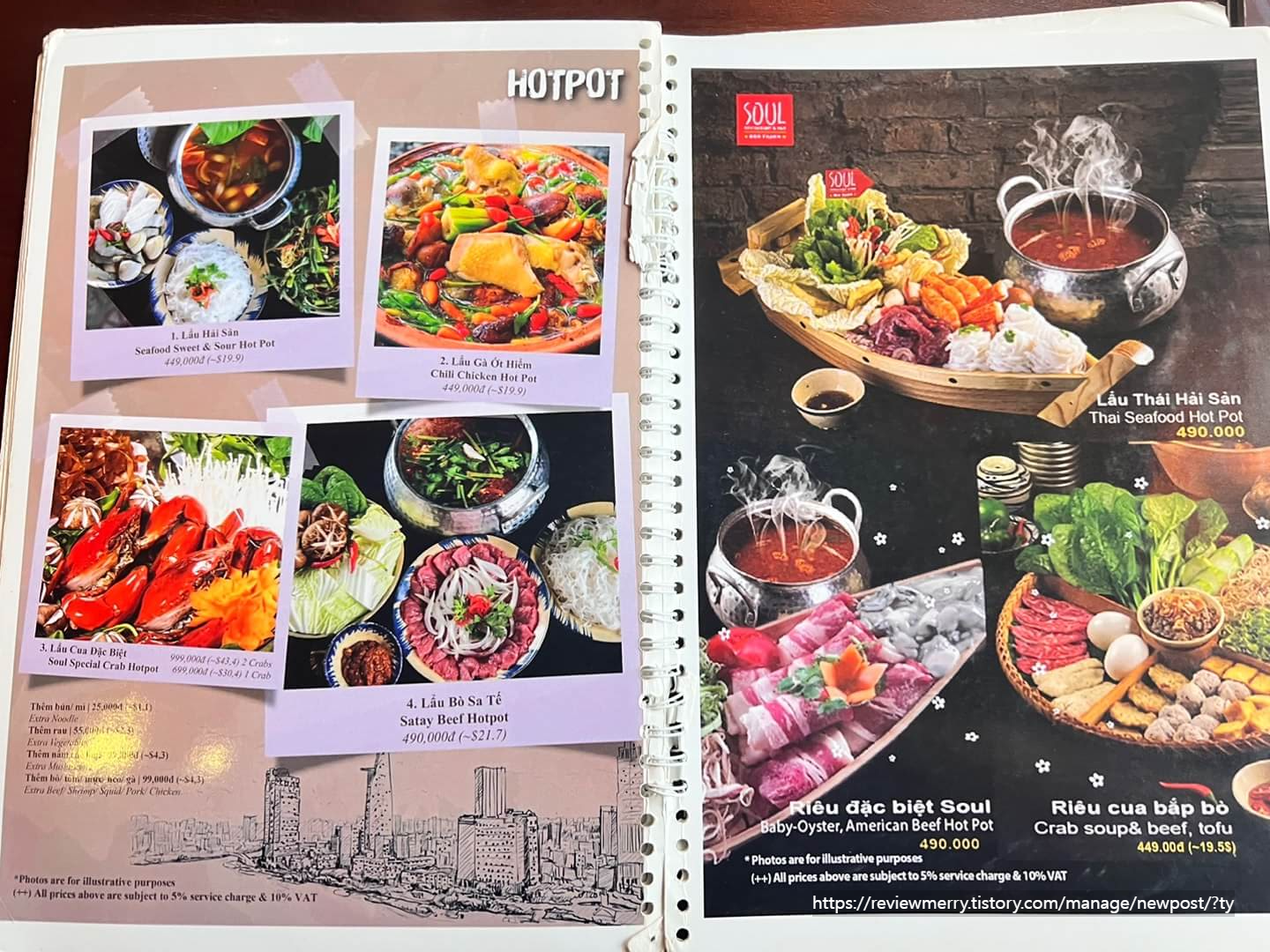특히 마음에 들었던 부분이 베트남 음식이다 보니 이름만 보고는 어떤 음식인지 알기가 어려운데 소울(soul)의 경우 메뉴판에 음식의 이름과 사진, 그리고 간략한 설명이 함께 기재되어 있어서 음식을 고르는데 조금 수월했어요.
