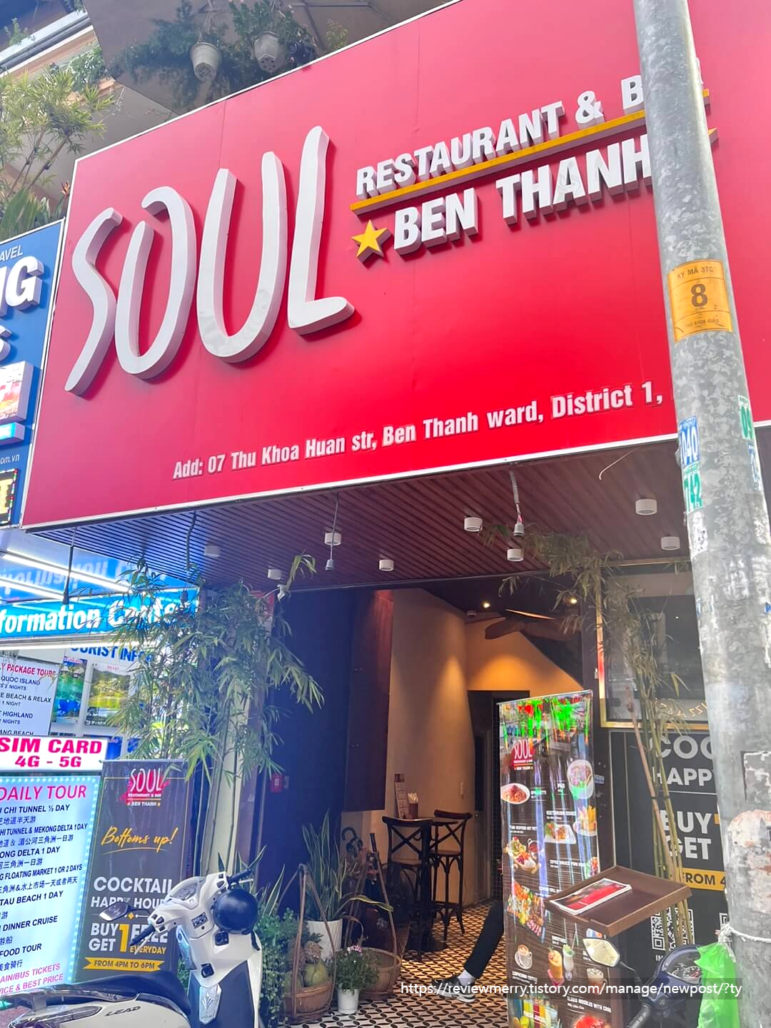 안녕하세요~ 리뷰하는 메리입니다! 오늘은 호찌민 벤탄시장 근처에 있는 깨끗하면서도 베트남 현지의 맛을 즐길 수 있는 현지음식 레스토랑 '소울(soul)'에 대한 정보와 직접 가서 먹어본 후기를 함께 리뷰해보려고 합니다. 현지 음식을 즐기고 싶으신데 깨끗한 식당을 찾고 계시다면 유용한 정보가 될 거예요!