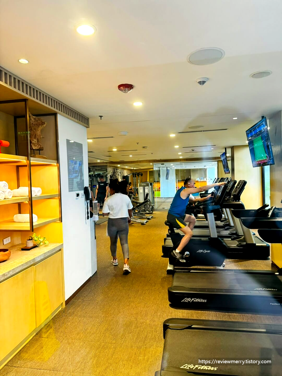 리조트 내부에는 투숙객이라면 누구나 무료로 이용 가능한 피트니스도 있어요! 스파 바로 옆에 위치하고 있으며 수영장 입구에 있어서 어렵지 않게 찾으실 수 있을 거예요:-)