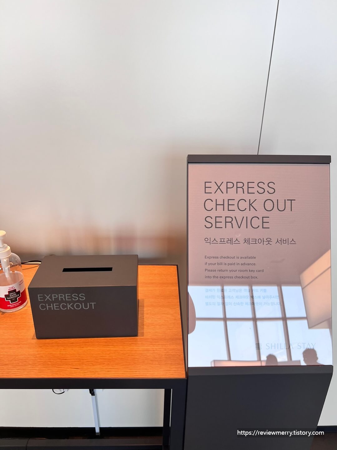 이외에 빠르게 체크아웃할 수 있는 EXPRESS CHECK OUT 함과 설명이 적혀 있다.