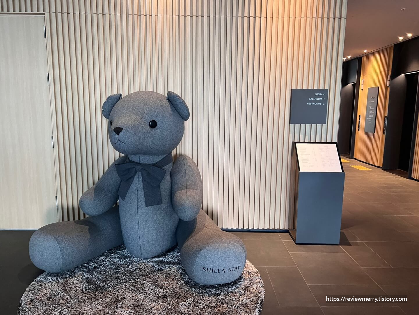 1F 입구에는 신라스테이 시그니처 곰인형이 대형으로 전시되어 있는데 그 크기가 꽤 크고 귀엽기 때문에 함께 사진을 찍는 포토스폿 중 하나이다. 또한 호텔 내부에서 바로 갈 수 있는 GS25 편의점이 있으며 그 규모가 꽤 크기 때문에 숙박 시 필요한 물건을 구입하는데 용이하다.