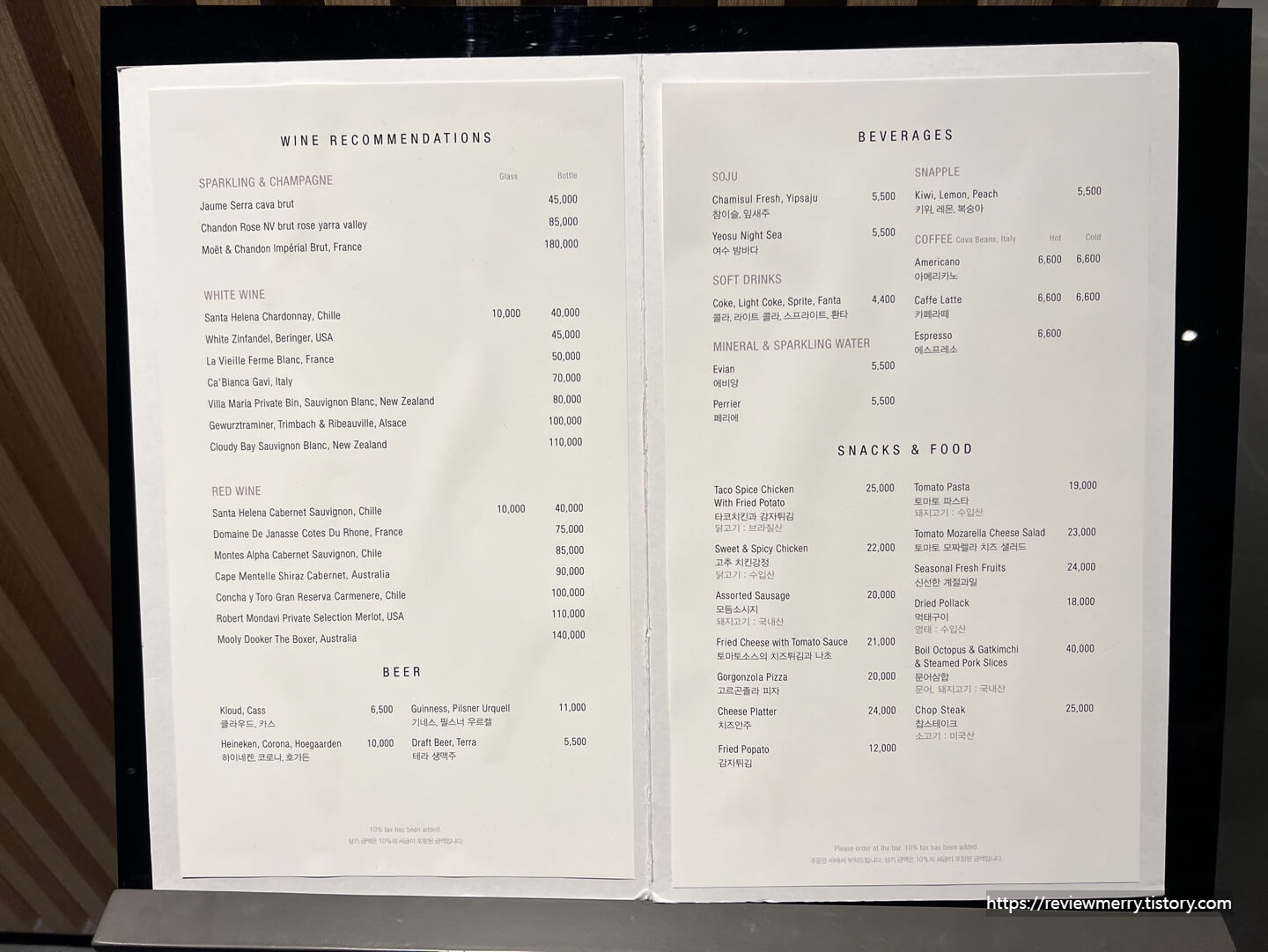 신라스테이 7층에 위치한 곳에서 주중 18:00 ~ 23:00 / 주말 18:00 ~ 24:00에 진행되며 안주는 별도이며 생맥주는 테라 생맥주가 제공된다.