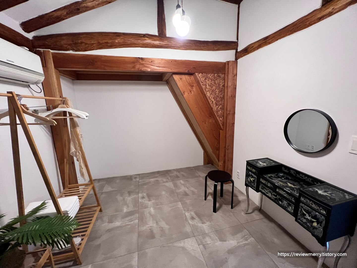 또한, 이 여분의 방 또한 그 크기가 작지 않아서 짐을 보관하기에 너무 용이했고, 한편에 화장대도 마련되어 있어 여성분들이 아침에 화장을 하거나 머리를 세팅하기에 좋을 것 같다.
