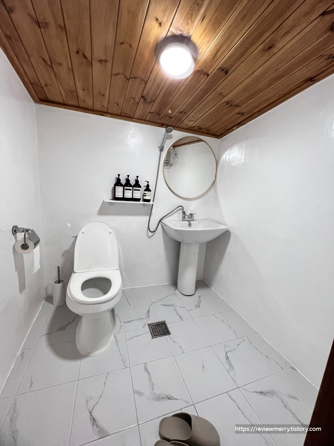 블랑슈의 경우 우리 커플이 예약한 방이 아니어서 별도로 화장실을 촬영하지 못했지만, 동행의 후기를 빌어 이야기하자면 화장실 천장의 높이가 다소 낮아 키가 매우 큰 남성의 경우 사용에 불편함을 느낄 수 있다.